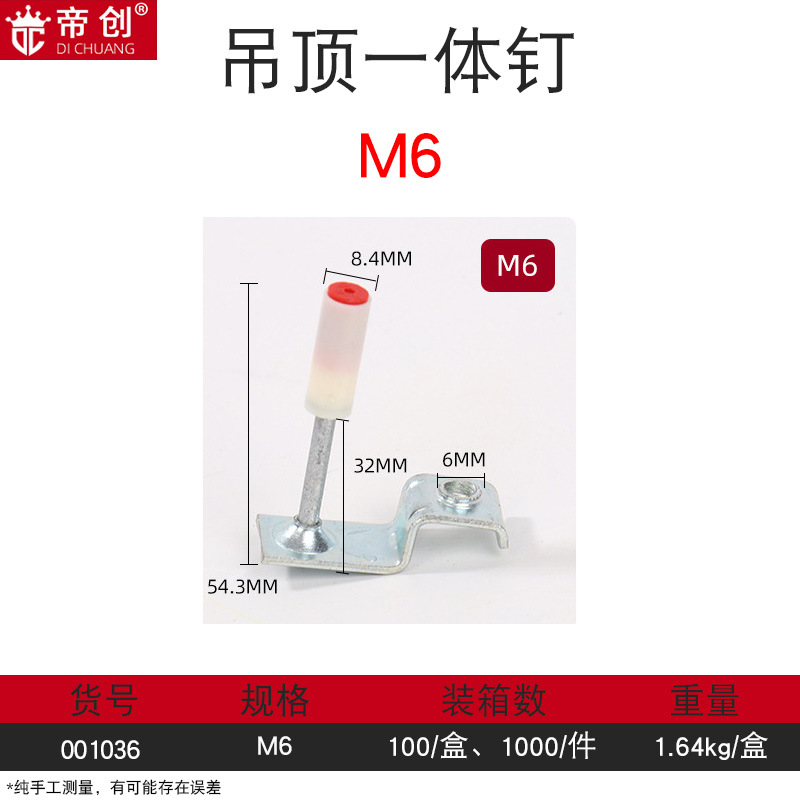 • M6 천장 못, 1.64 kg/box, 100/상자 1000/조각