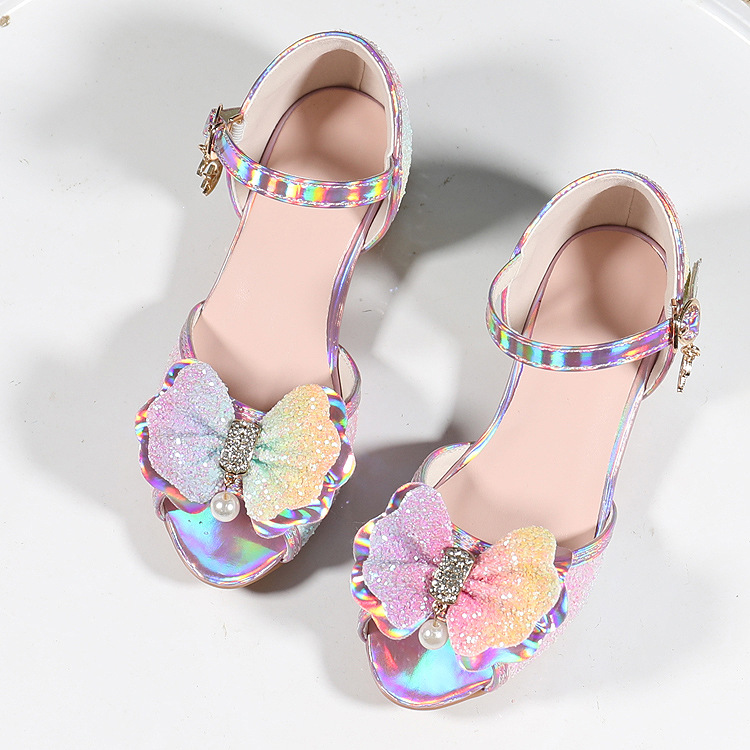 2023 새로운 아이스 레인보우 꿈꾸는 소녀 하이힐 어린이 공주 샌들 활 어린이 신발 크리스탈 힐