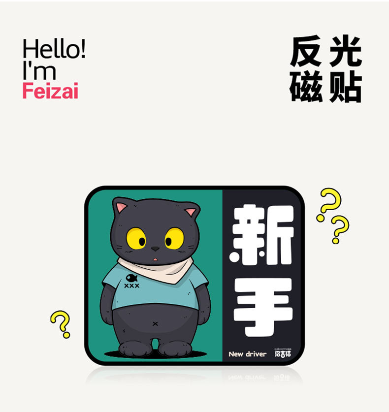 Zhao Ji 고양이 자동차 스티커 뚱뚱한 소년 도로에 초보자 마그네틱 스티커 자동차 개인화 반사 경고 스티커 자동차 후면 장식 자기 흡착