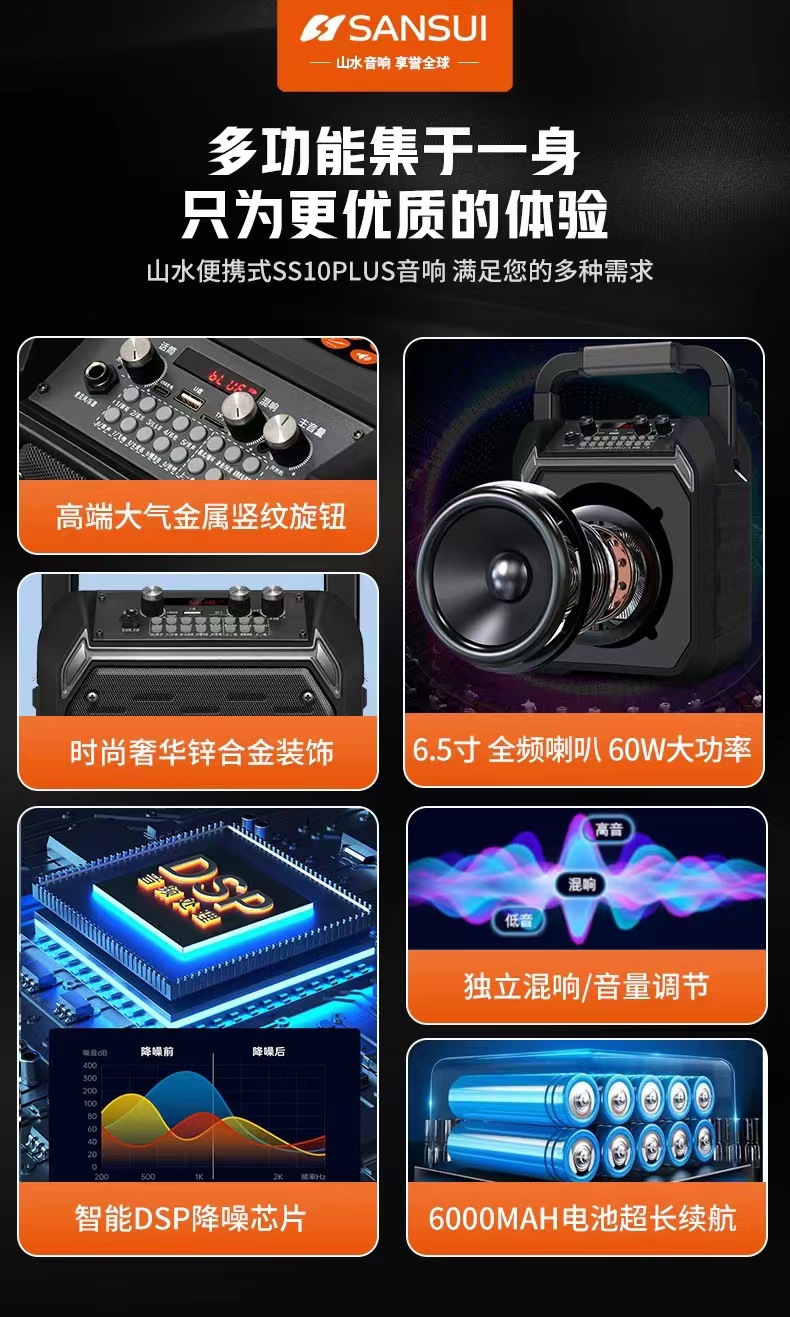 풍경 SS10 블루투스 스피커 야외 사운드 대용량 휴대용 스퀘어 댄스 k 송 서브 우퍼 무선 고출력스토어 가기