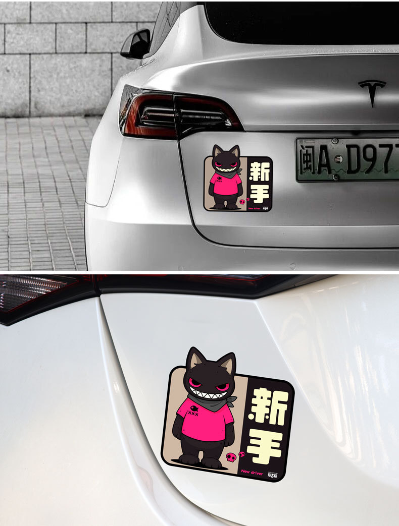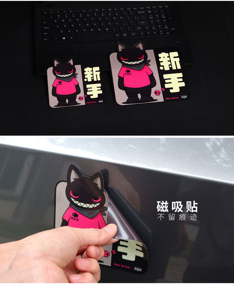 Zhao Ji 고양이 악마 왕 초보자 인턴쉽 마그네틱 스티커 자기 흡착 바디 스티커 경고 전기 오토바이 반사 스티커