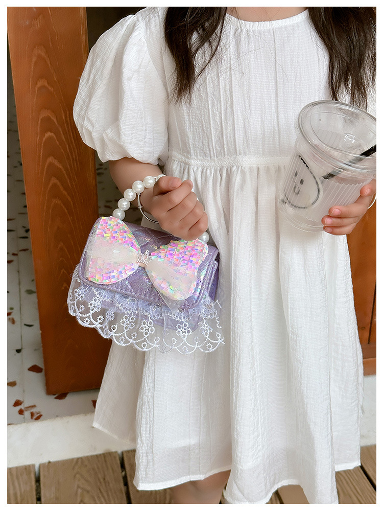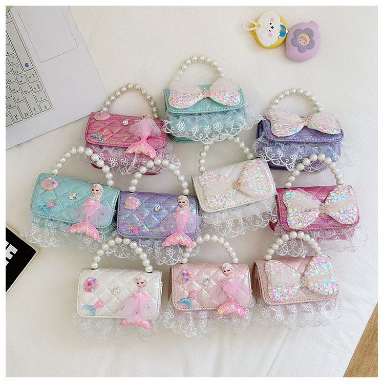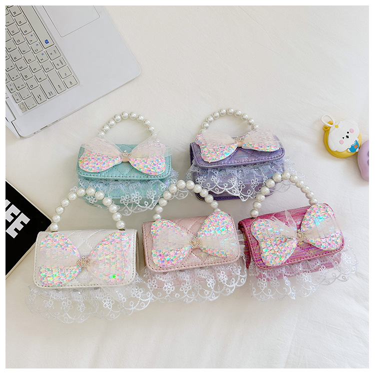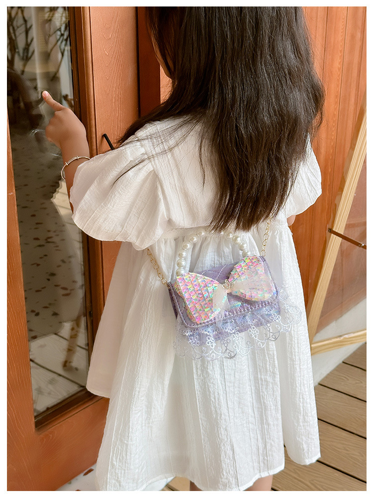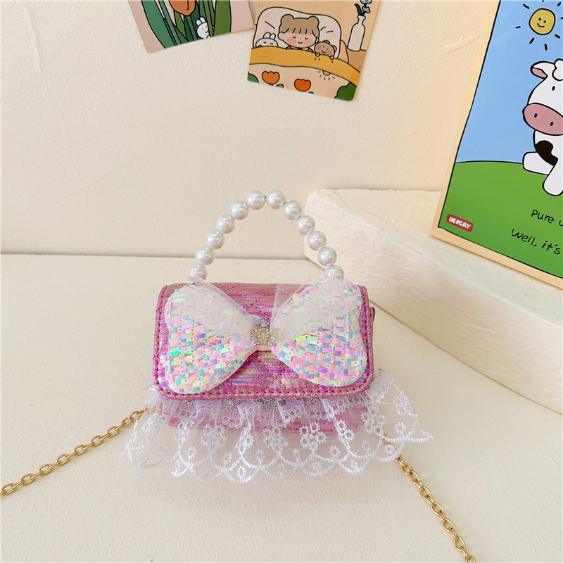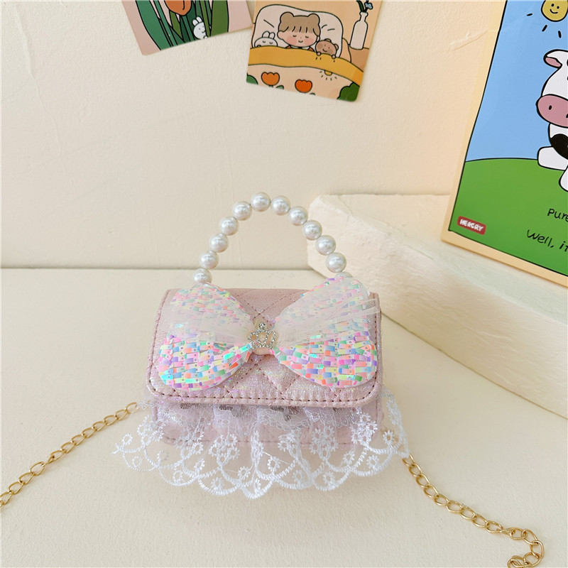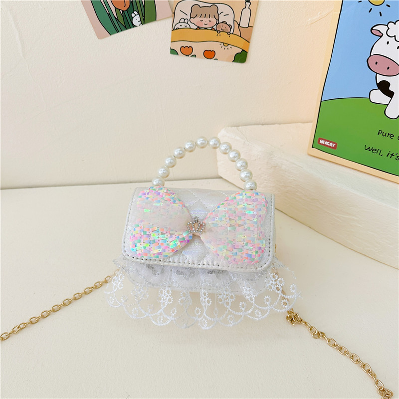 2023 새로운 활 어린이 핸드백 동전 지갑 샤넬 진주 공주 크로스 바디 백 여아 액세서리 숄더백