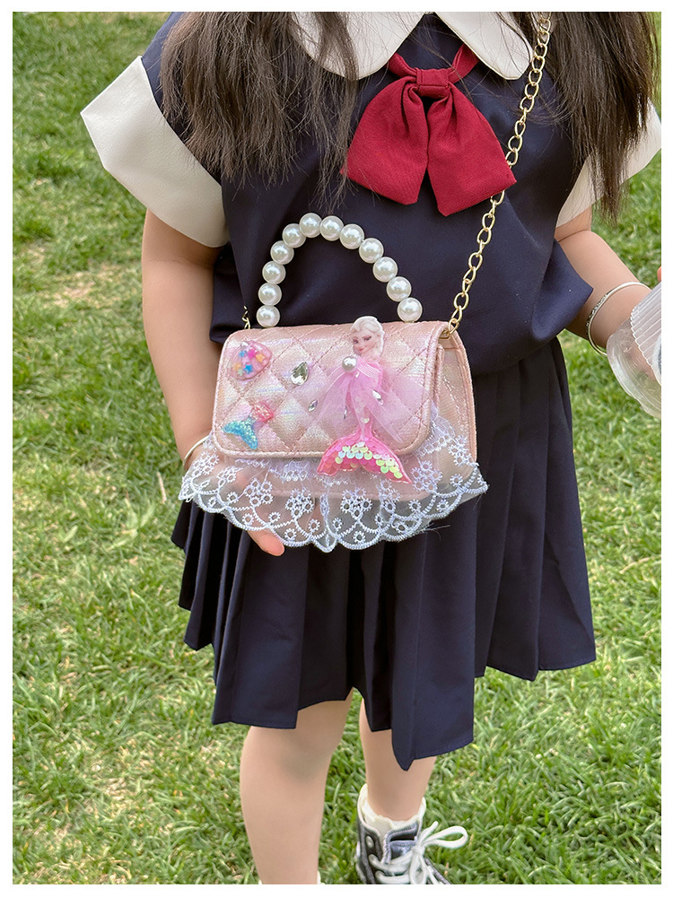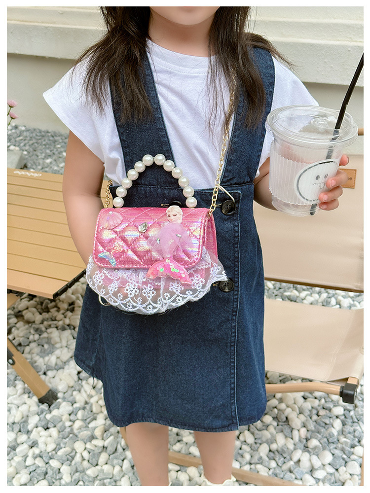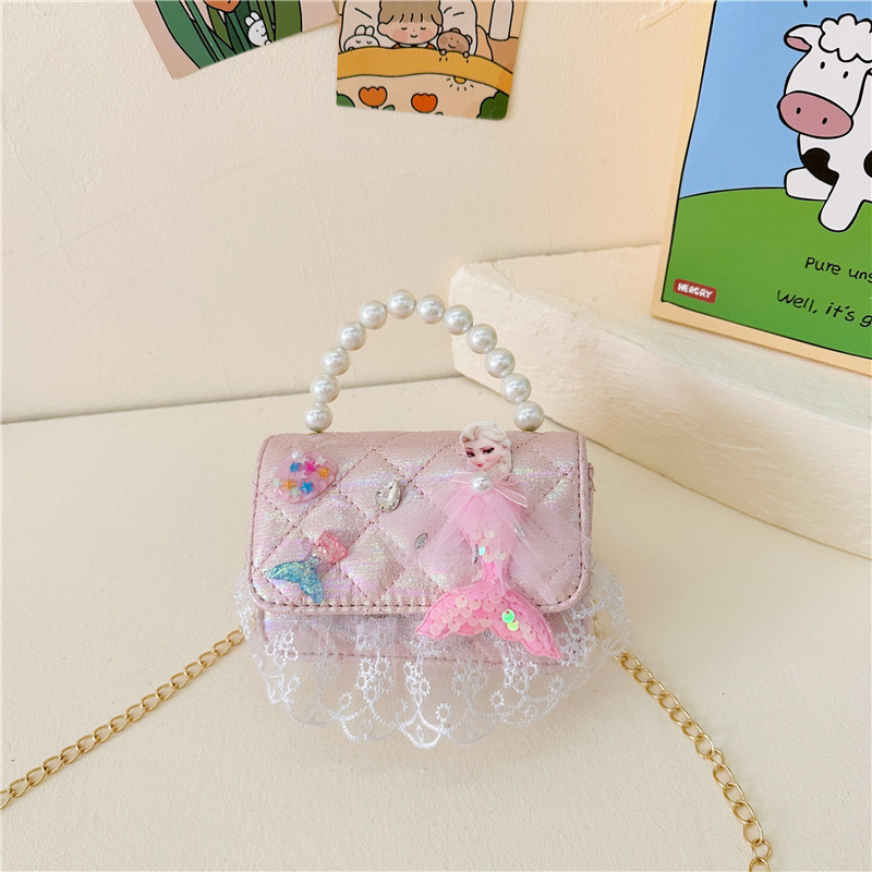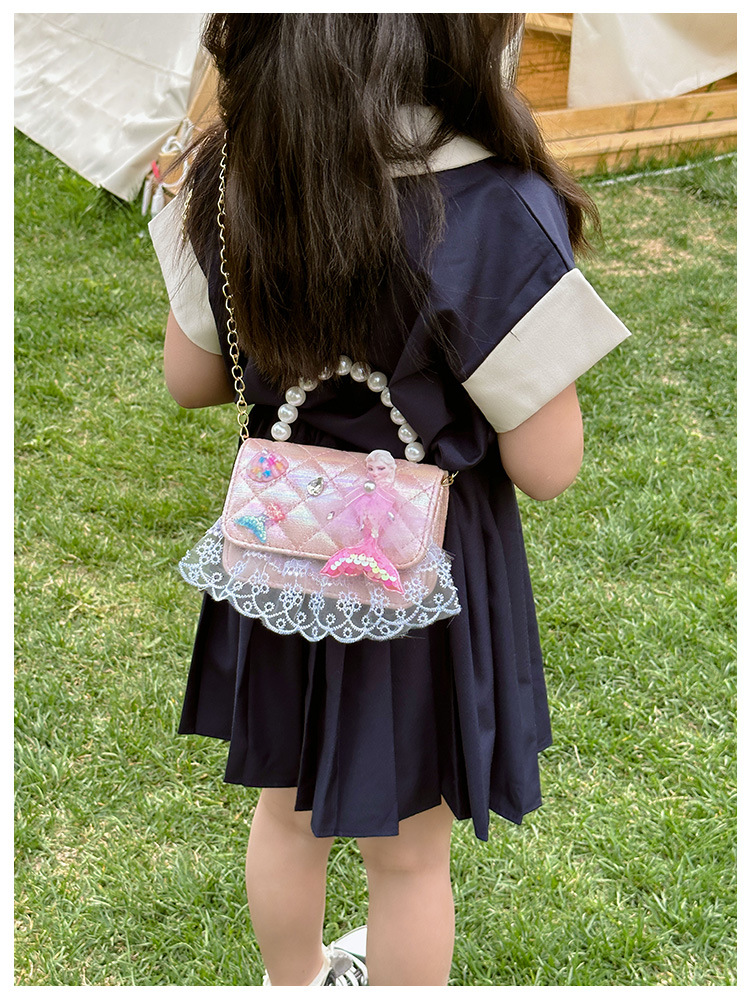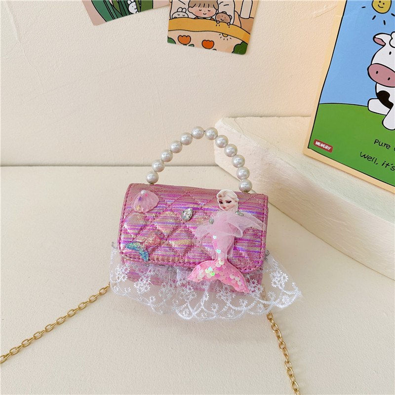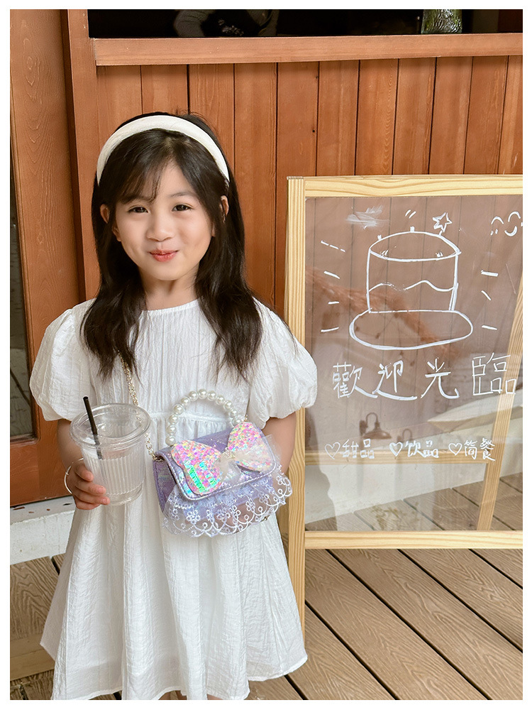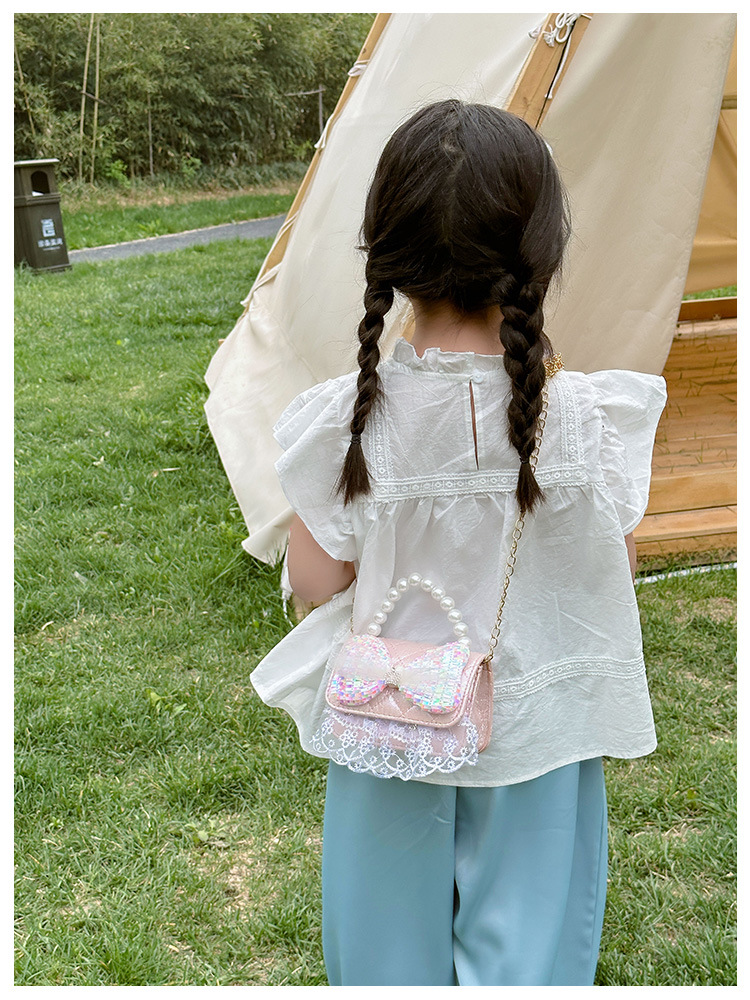 2023 새로운 활 어린이 핸드백 동전 지갑 샤넬 진주 공주 크로스 바디 백 여아 액세서리 숄더백