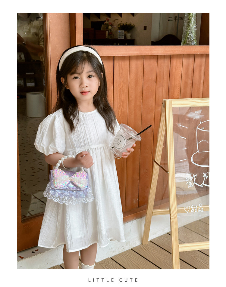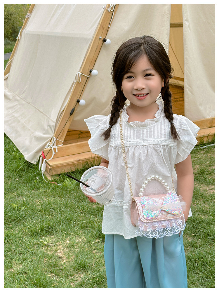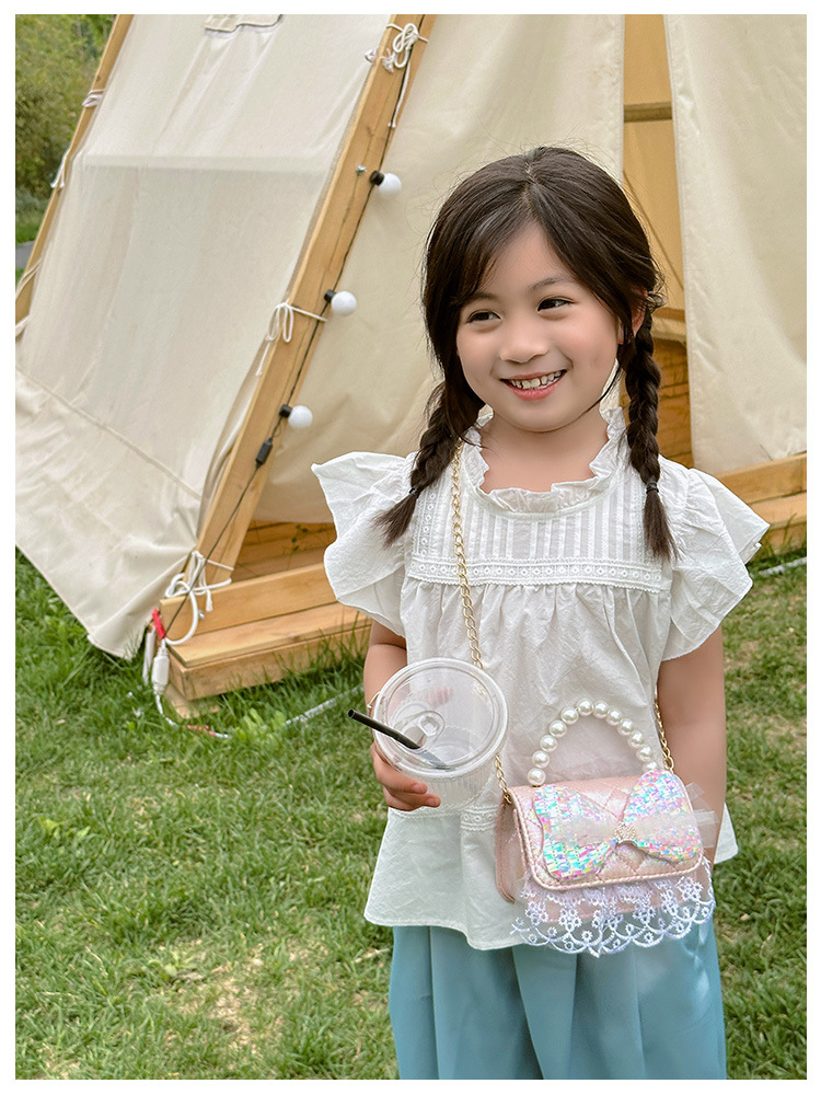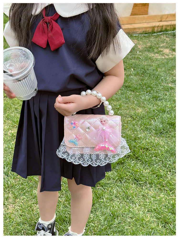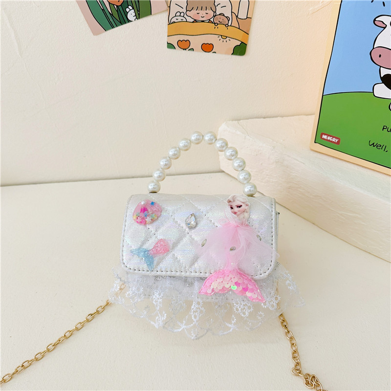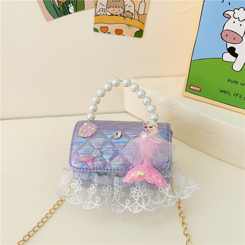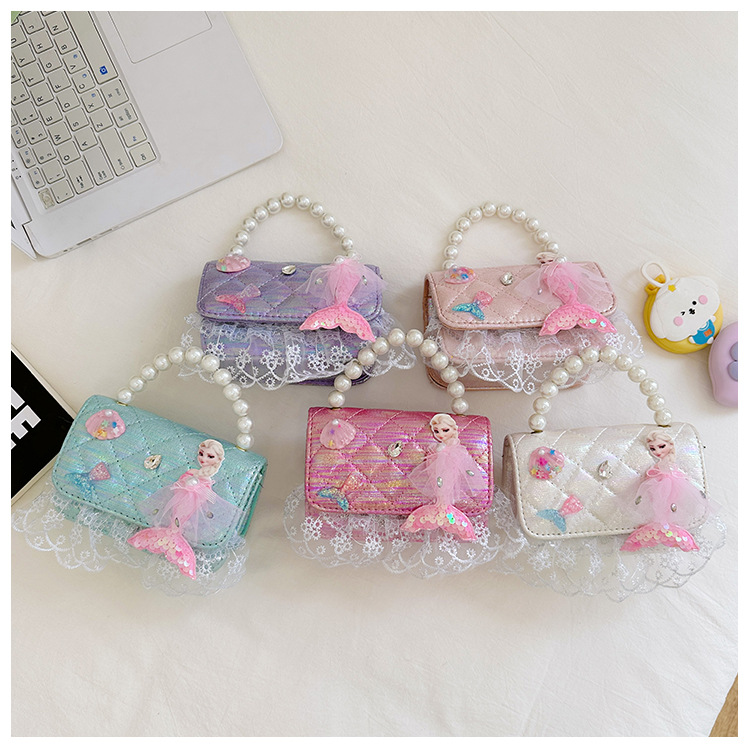 2023 새로운 활 어린이 핸드백 동전 지갑 샤넬 진주 공주 크로스 바디 백 여아 액세서리 숄더백