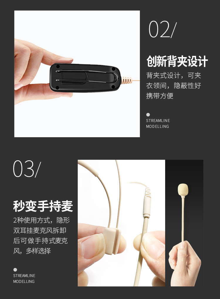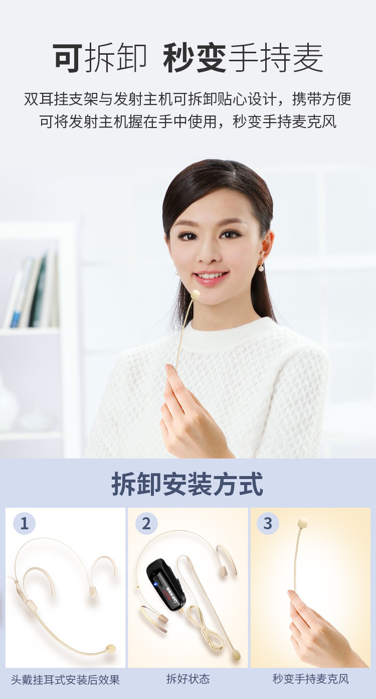 스킨 컬러 귀 걸이 무선 마이크 미니 무대 공연 노래 교사 투어 가이드 확성기 블루투스 마이크