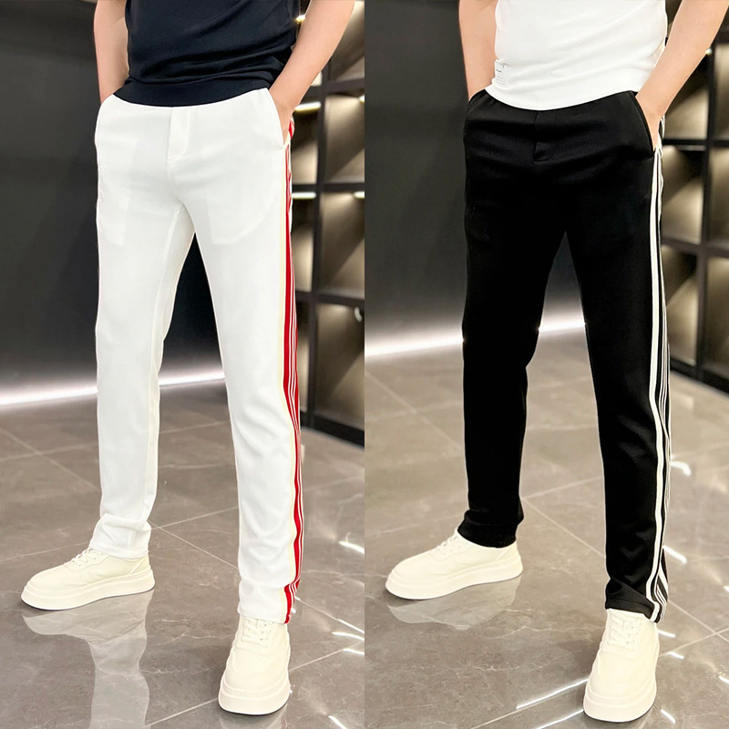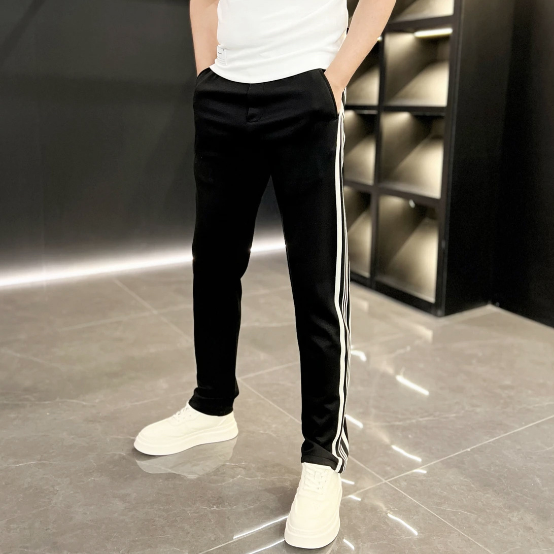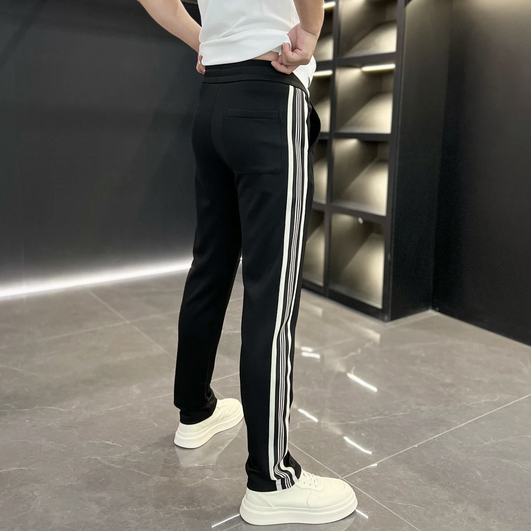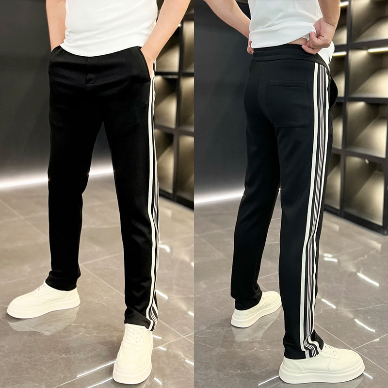 2023 봄과 가을 새로운 와이드 레그 스트레이트 팬츠 남성용 한국 스타일 트렌디 슬림핏 캐주얼 팬츠 루즈한 스트라이프 스포츠 팬츠