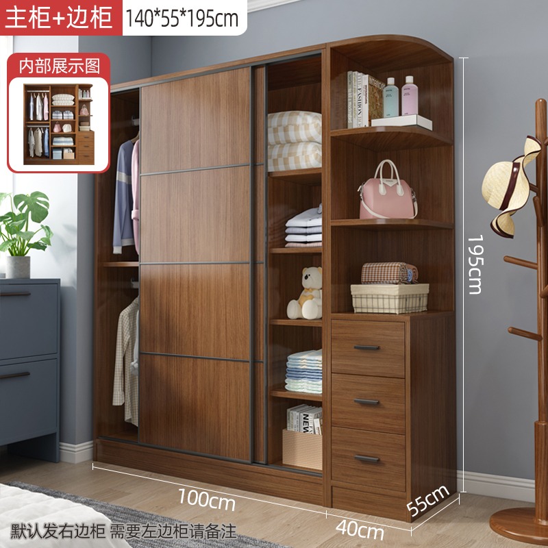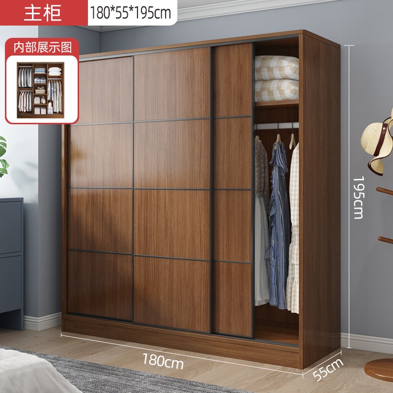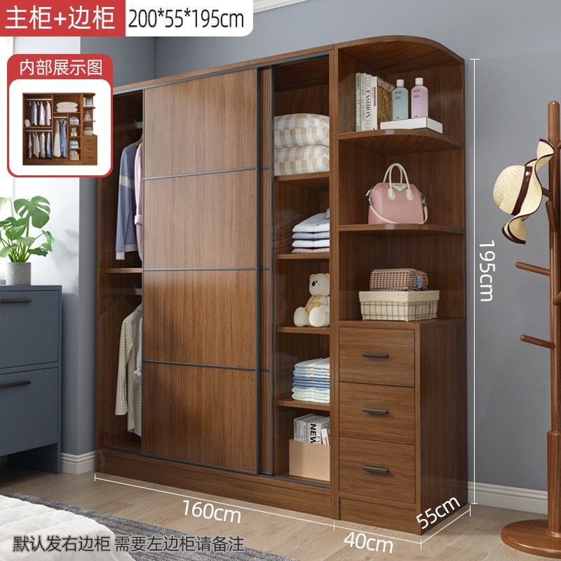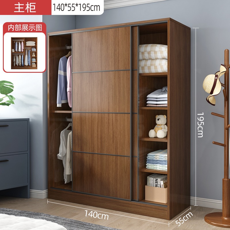 옷장 침실 홈 렌탈룸 간단한 조립 단단한 나무 옷장 작은 아파트 간단한 현대 슬라이딩 도어 캐비닛스토어 가기