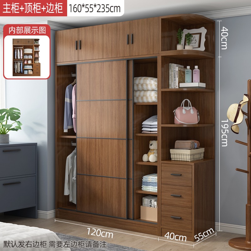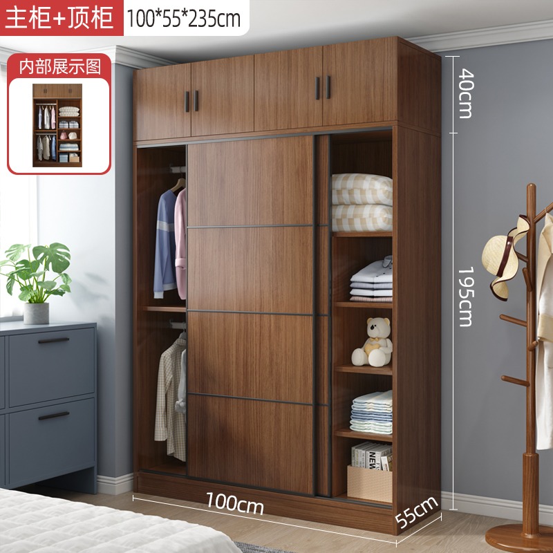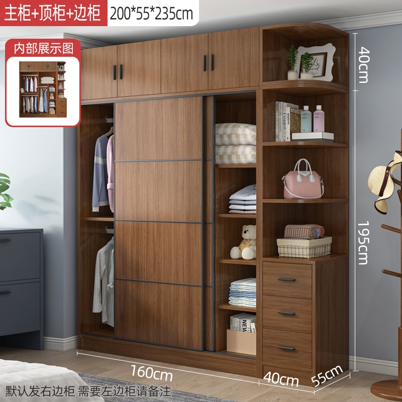 옷장 침실 홈 렌탈룸 간단한 조립 단단한 나무 옷장 작은 아파트 간단한 현대 슬라이딩 도어 캐비닛
