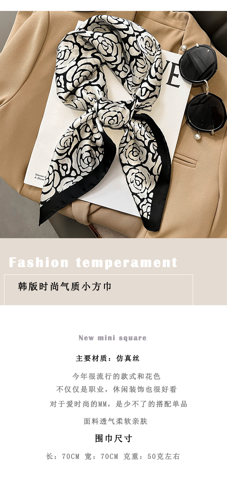 작은 실크 스카프 대형 스퀘어 스카프 여성용 목 보호 스카프 봄과 가을 겨울 스카프 셔츠가있는 어머니의 얇은 스카프 70 × 70스토어 가기