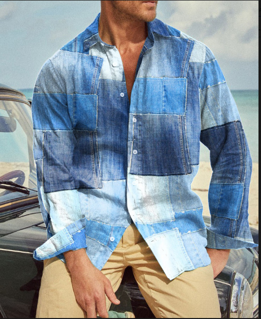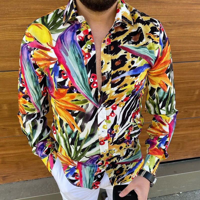 2023 국경 간 대외 무역 새로운 유럽과 미국 남성 청소년 긴팔 셔츠 3D 프린팅 캐주얼 슬림핏 남성 패션 인쇄