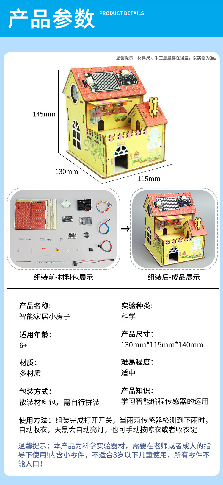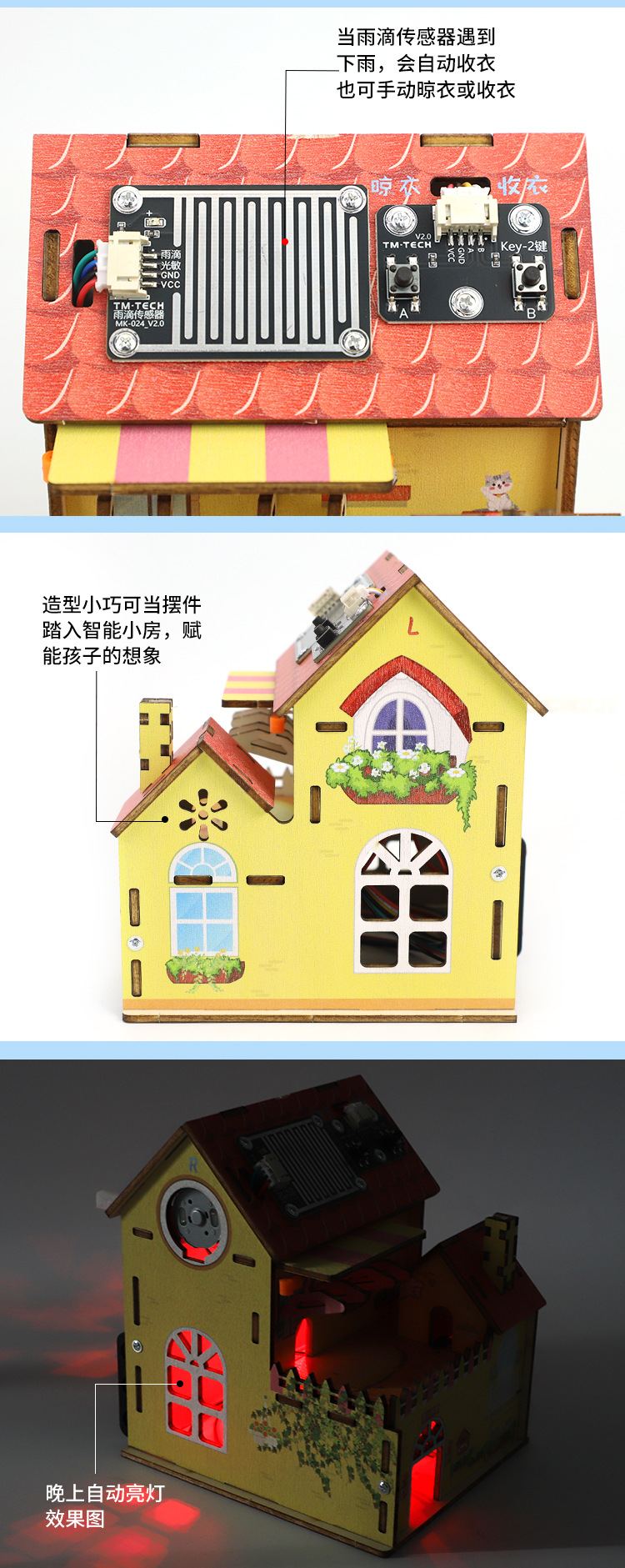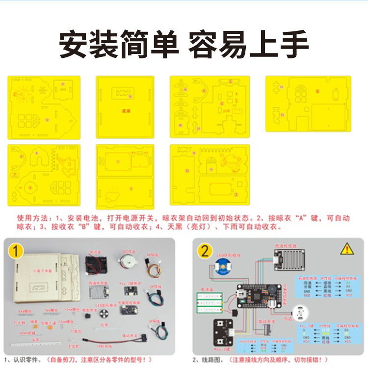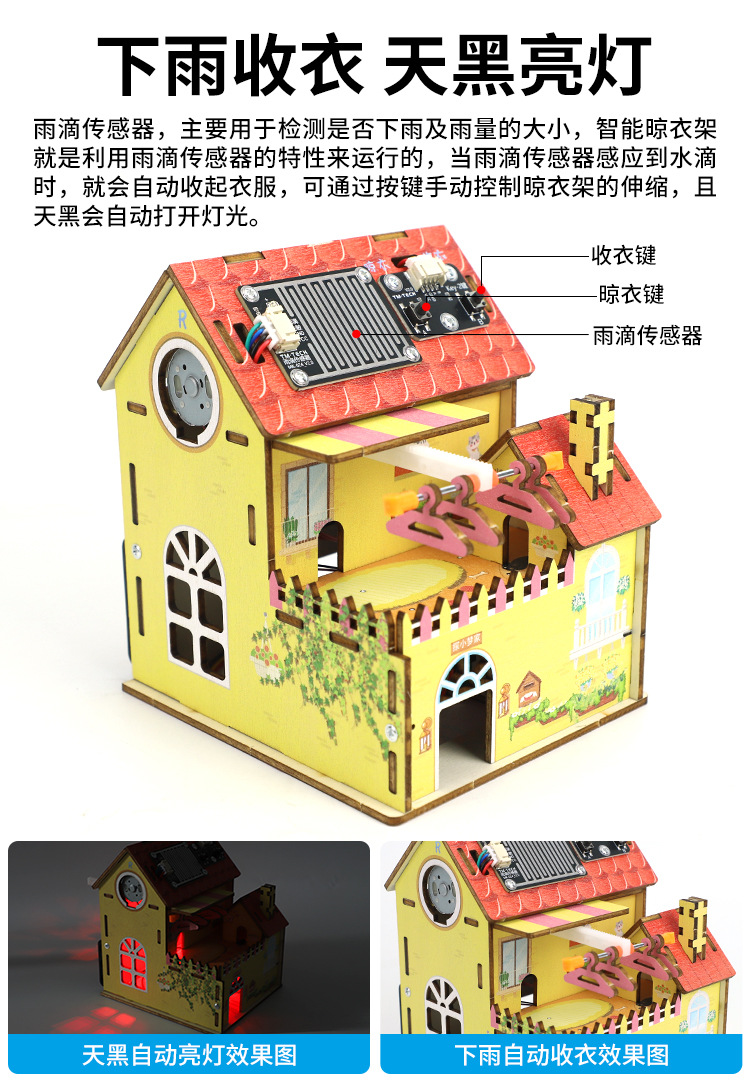 지능형 비 유도 옷 옷걸이 과학 실험 초등학교 학생 과학 기술 작은 생산 작은 집 과학 및 교육 프론티어 교육 보조