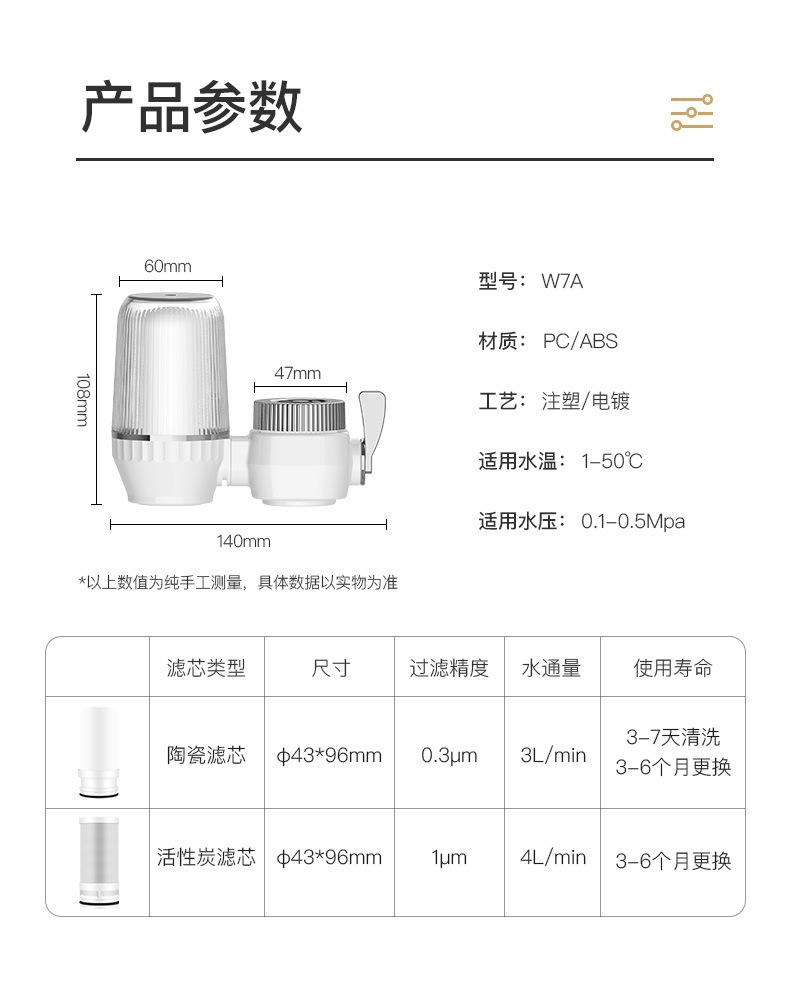 本产品为水龙头前置过滤器,适用于厨房、浴室水龙头,外观漂亮大气,机身材质为ABS,表面镀铬,透明杯体为PC材质,承受压力更大;可搭配陶瓷滤芯或活性炭滤芯,过滤效果看得见;我们是源头厂家,证书资质齐全,大量现货批发,支持贴牌定制加工,量大价优欢迎详询联系方式(咨询客服)