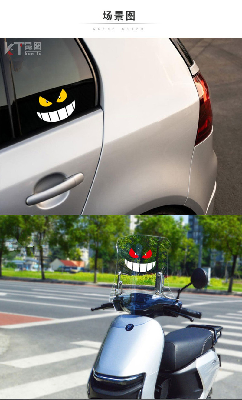 潮酷恶魔眼睛汽车贴纸电动摩托车头盔反光装饰贴玻璃个性创意车贴