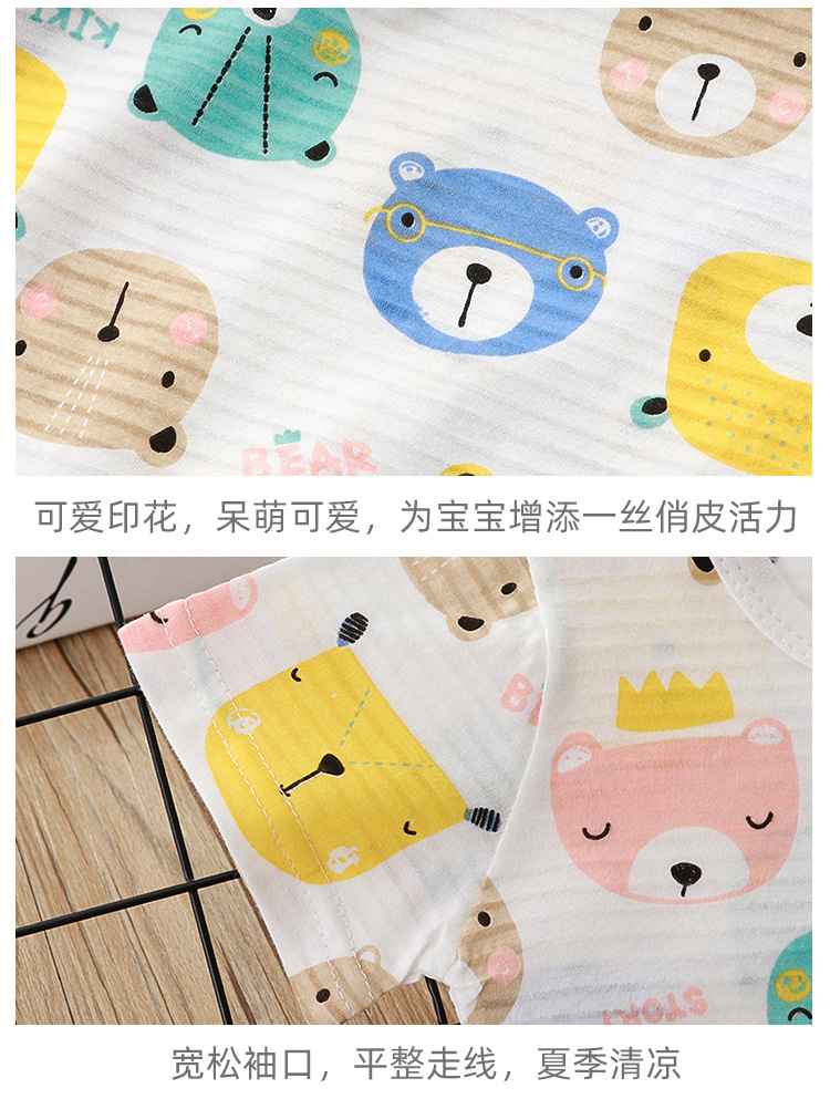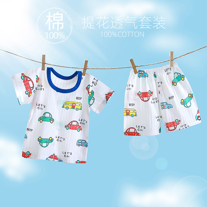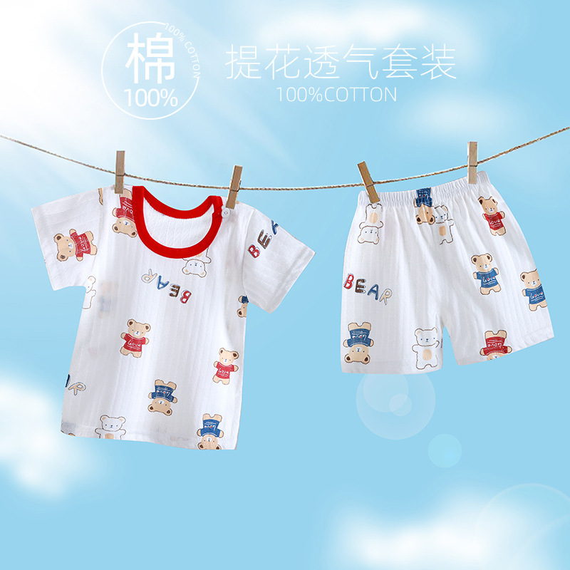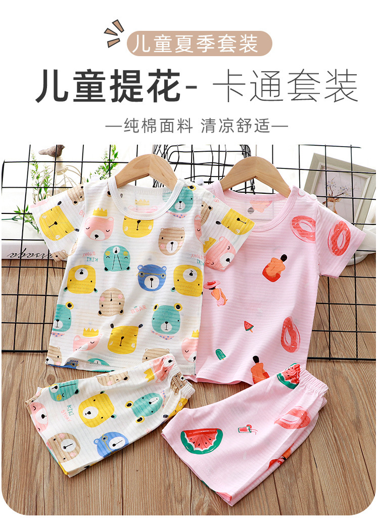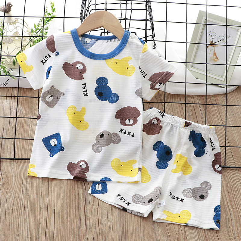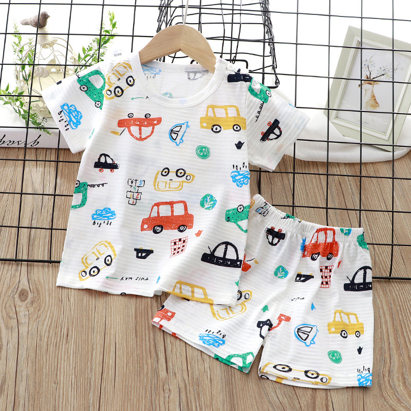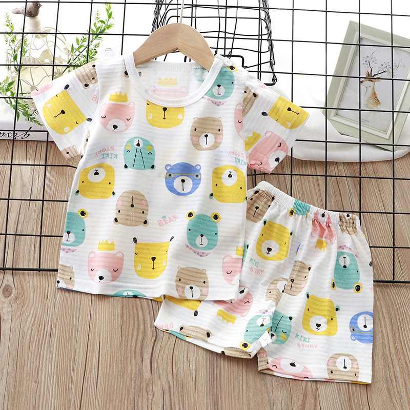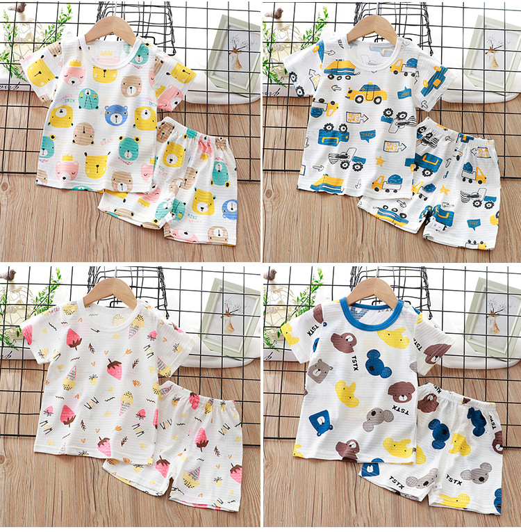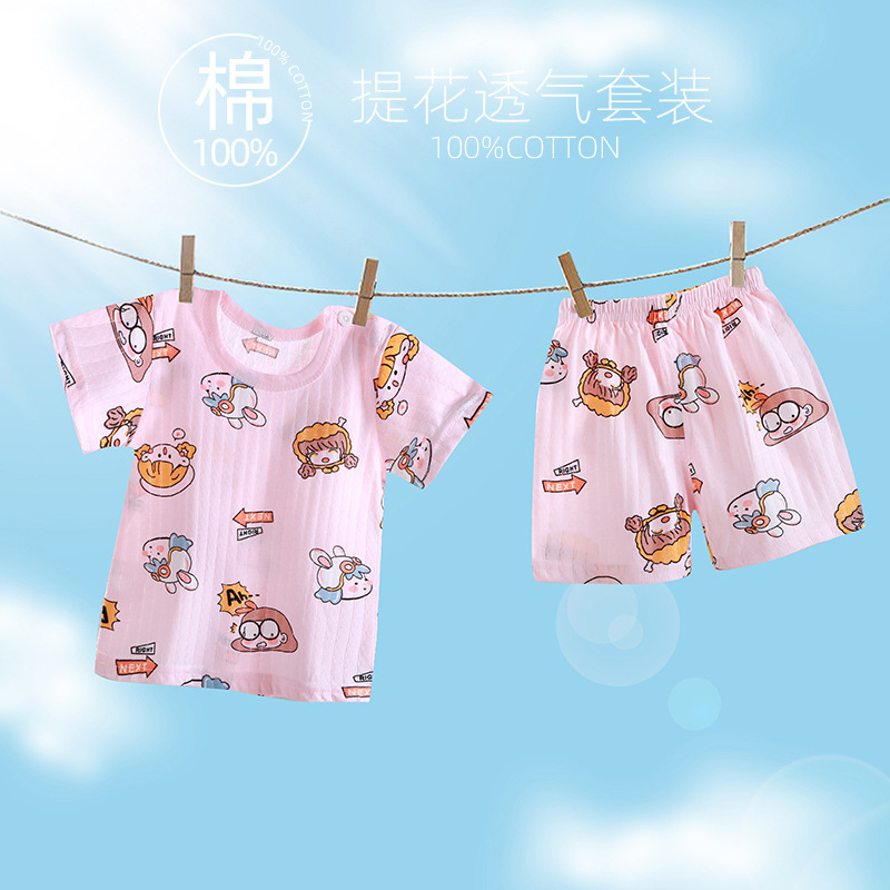 어린이 여름 반팔 세트 면 소년 소녀 아기 티셔츠 반바지 얇은 통기성 투피스 세트 1-3-6 세