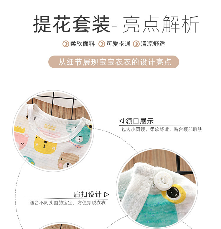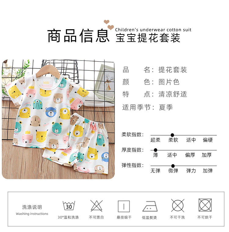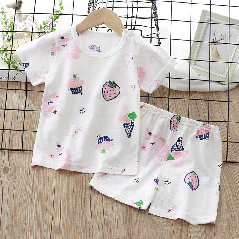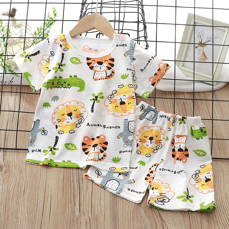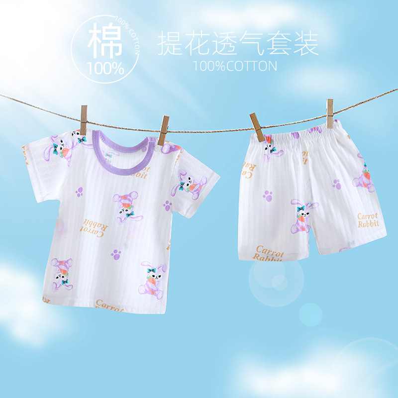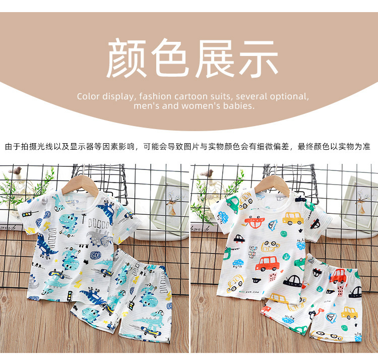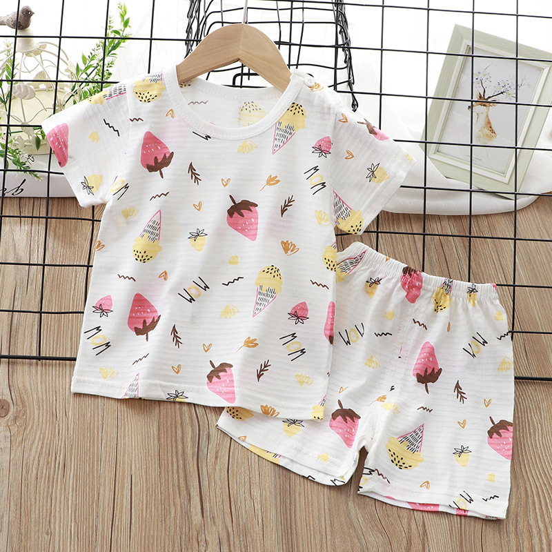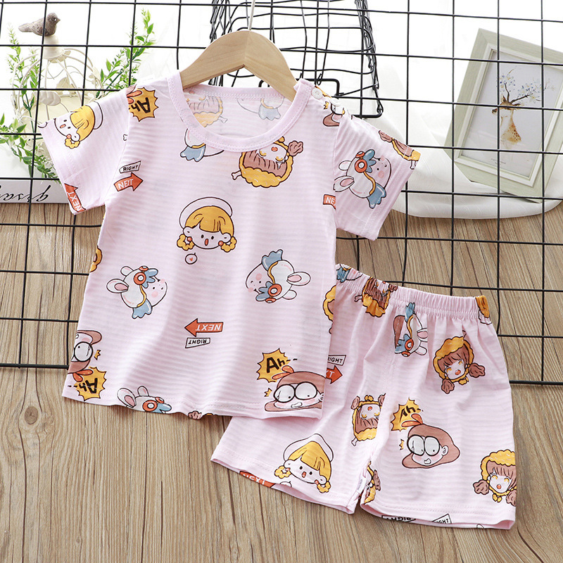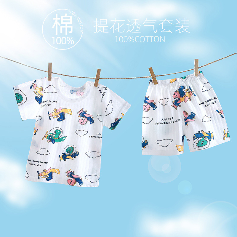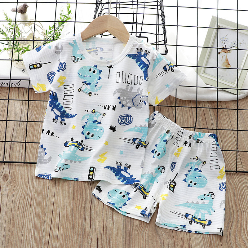 어린이 여름 반팔 세트 면 소년 소녀 아기 티셔츠 반바지 얇은 통기성 투피스 세트 1-3-6 세