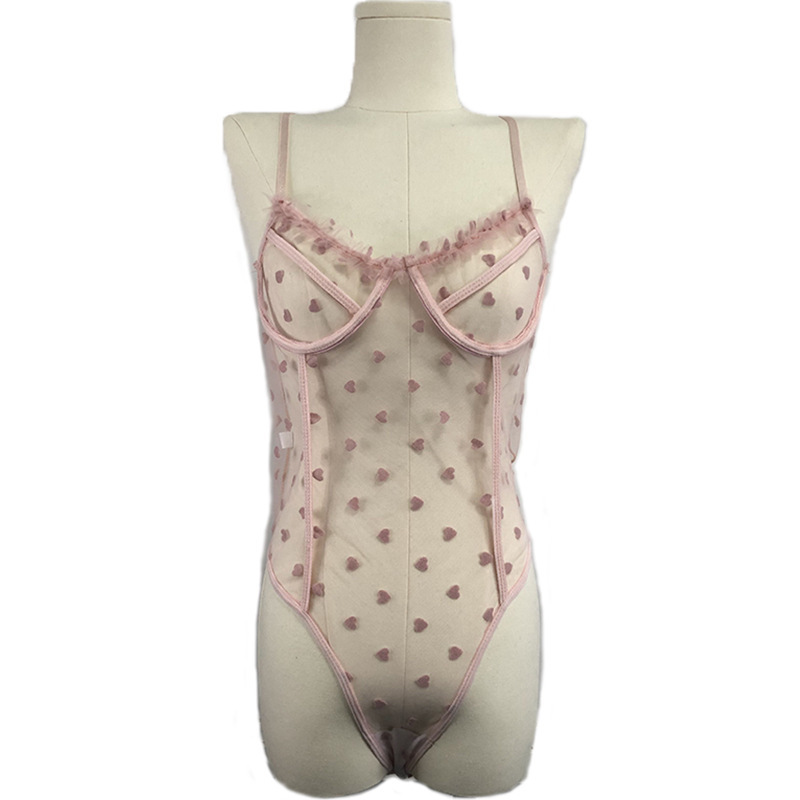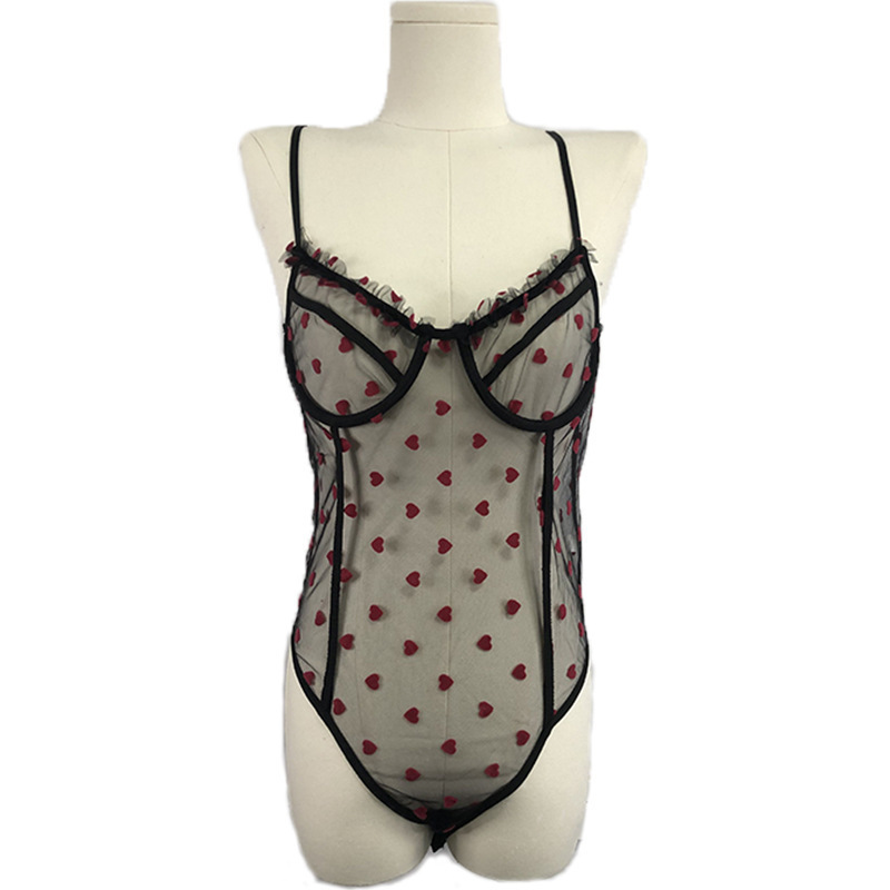 플러스 사이즈 여성의 속옷 재미 튜브 탑 세트 유럽과 미국 관점 사랑 메쉬 레이스 투명 유혹 잠옷 도매