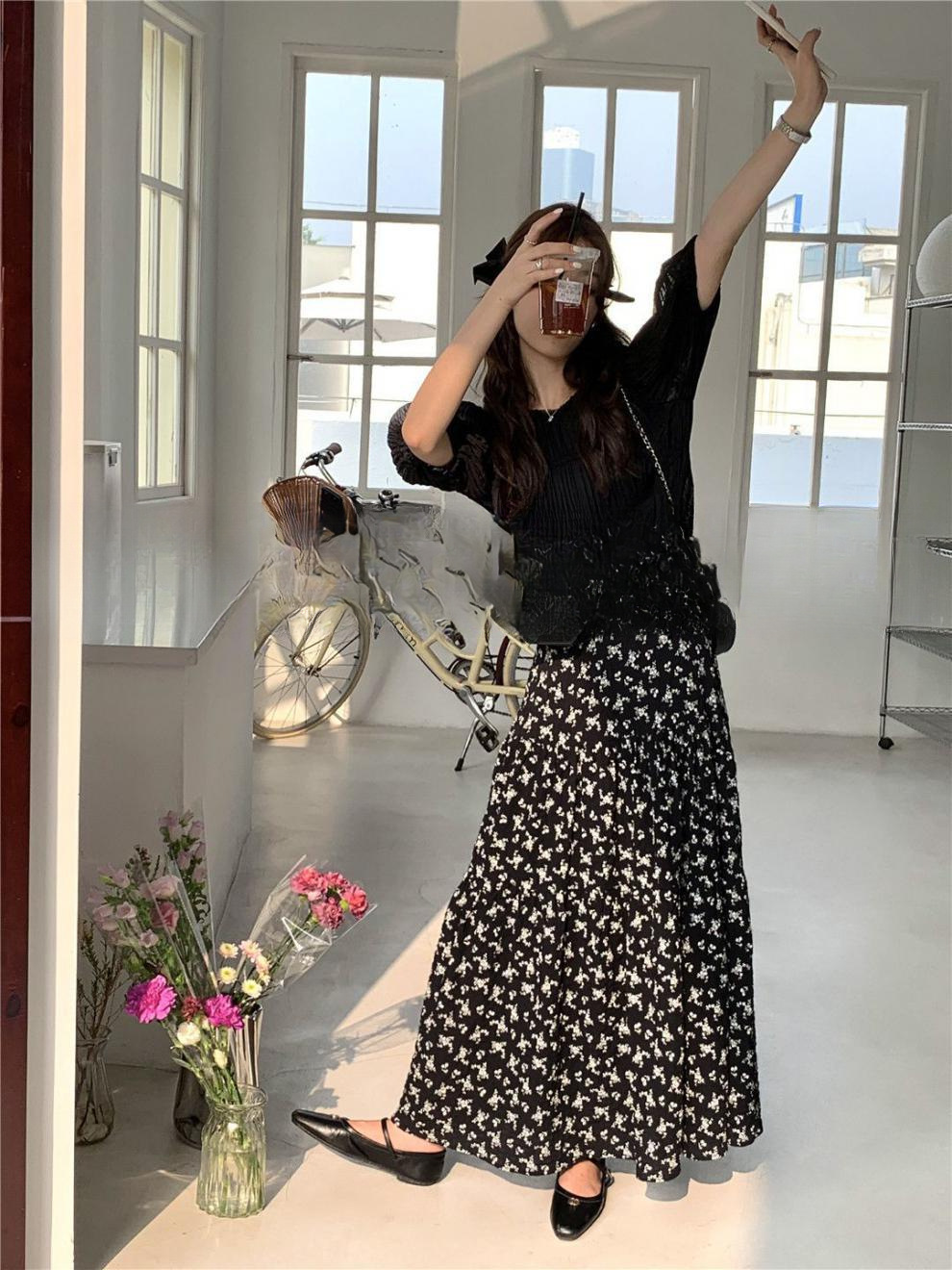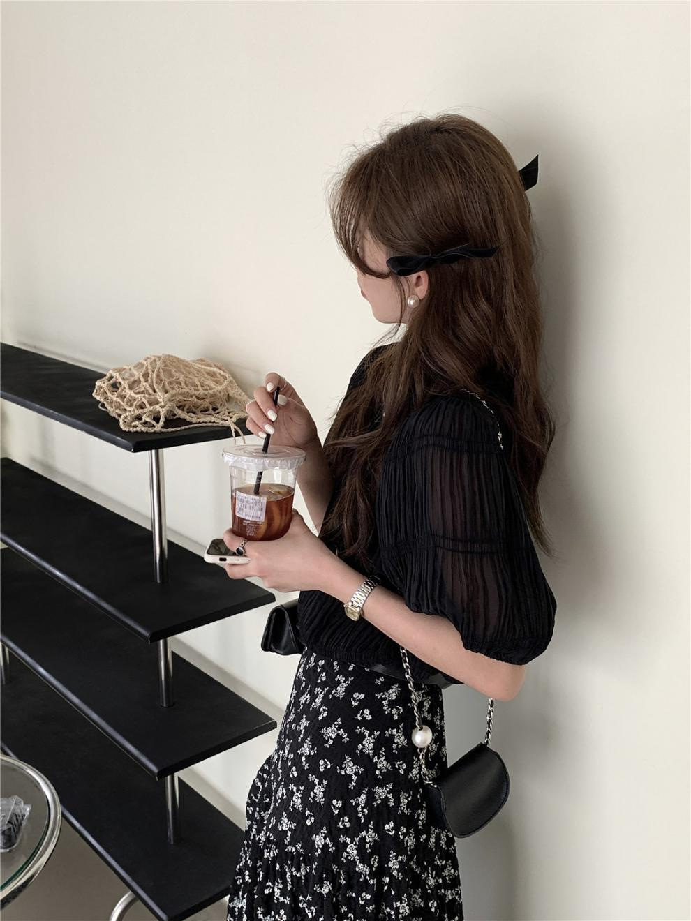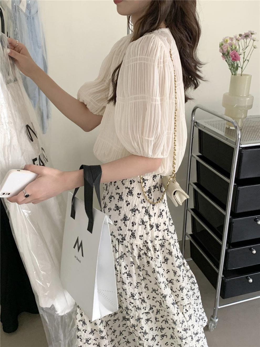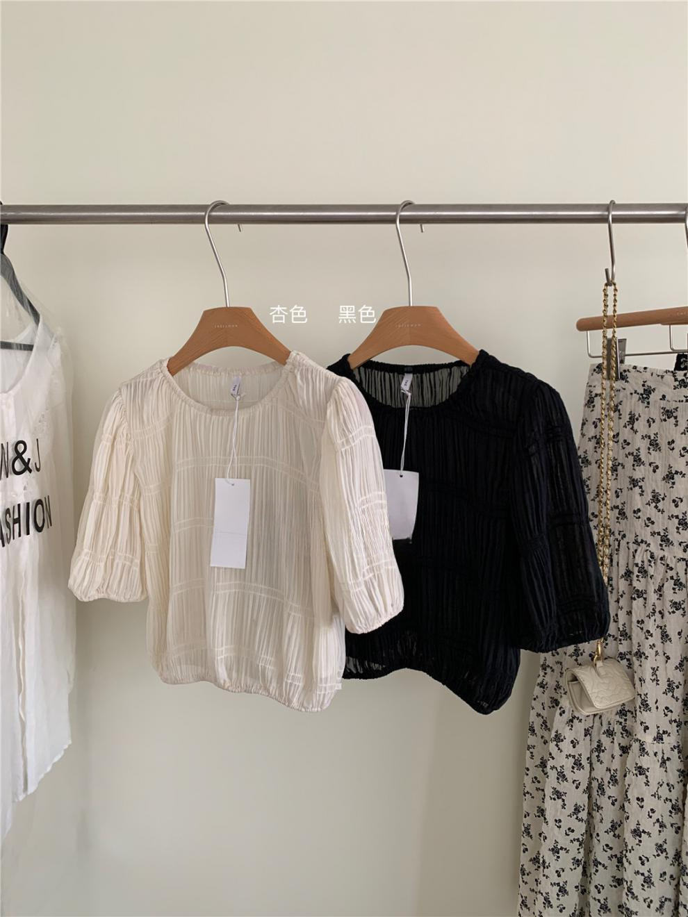 화이트 퍼프 슬리브 디자인 센스 반소매 셔츠 여성용 2023 여름 새로운 우아한 프랑스 시크 플리츠 쉬폰 셔츠스토어 가기