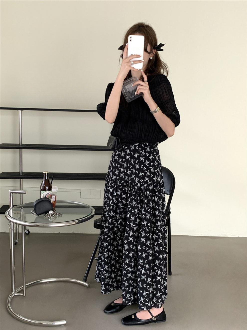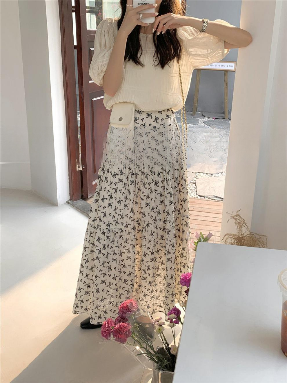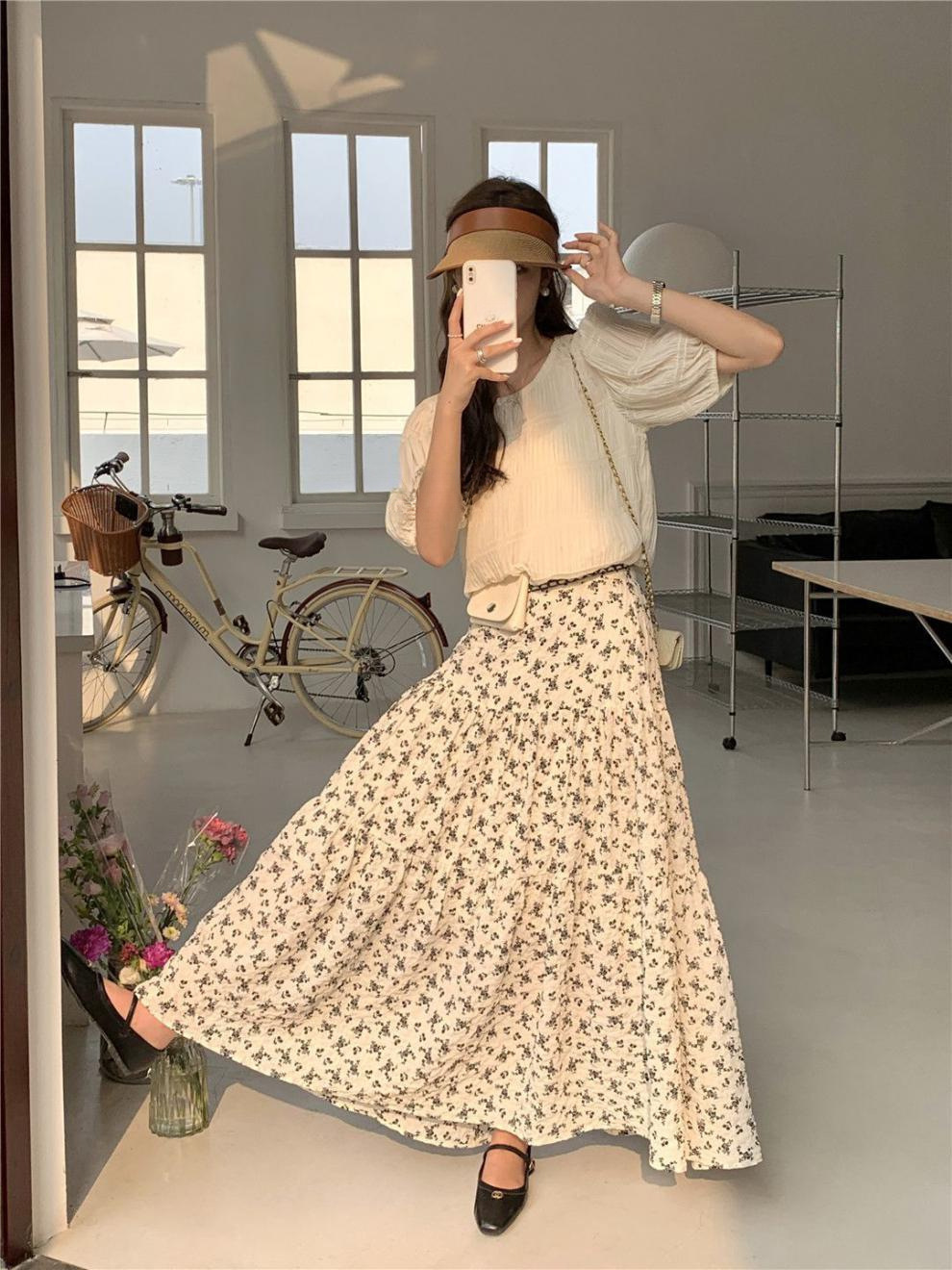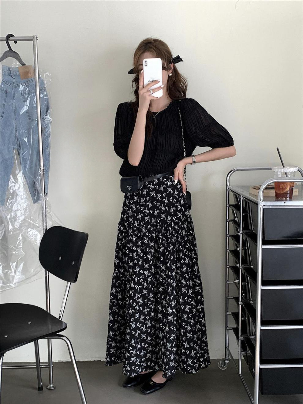 화이트 퍼프 슬리브 디자인 센스 반소매 셔츠 여성용 2023 여름 새로운 우아한 프랑스 시크 플리츠 쉬폰 셔츠스토어 가기