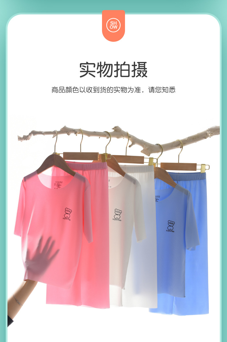 어린이 잠옷 여름 얇은 얼음 실크 여아 가정복 세트 소년의 투피스 면 실크 여름 아기 여름 옷스토어 가기