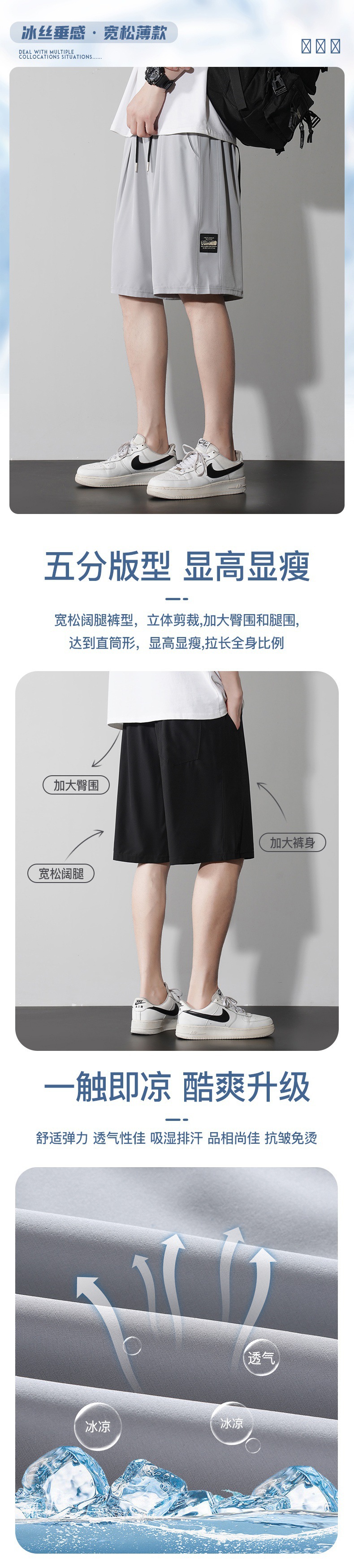 아이스 실크 반바지 남성용 여름 새로운 유행 느슨한 스트레이트 캐주얼 5 점 바지 남성용 속건 비치 스포츠 운동복