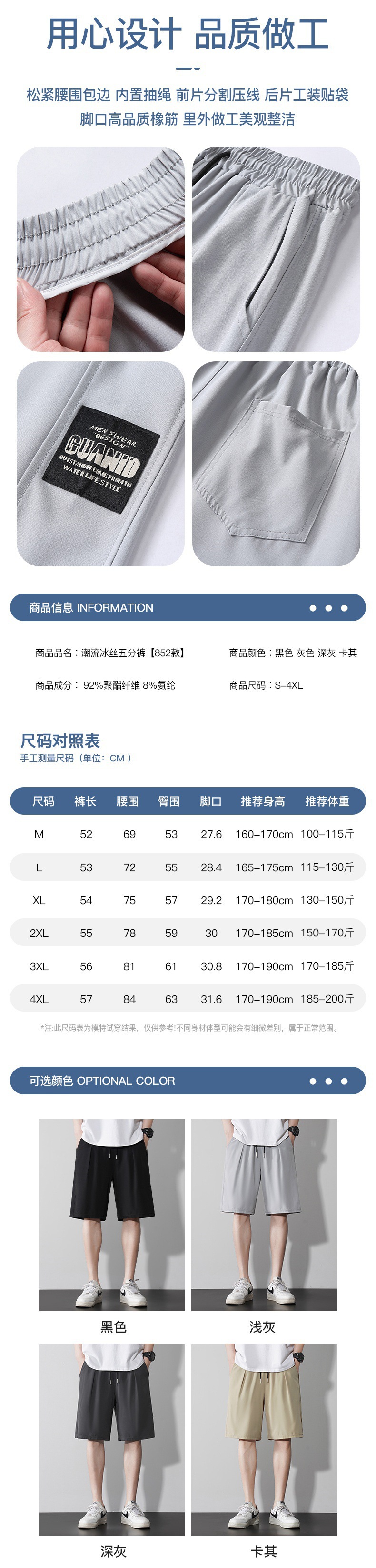 아이스 실크 반바지 남성용 여름 새로운 유행 느슨한 스트레이트 캐주얼 5 점 바지 남성용 속건 비치 스포츠 운동복스토어 가기