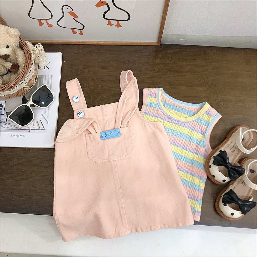 여아 멜빵 스커트 여름 세트 2023 새로운 어린이 세련된 슬립 스커트 투피스 세트 아기 토끼 토끼 스커트 해외 무역
