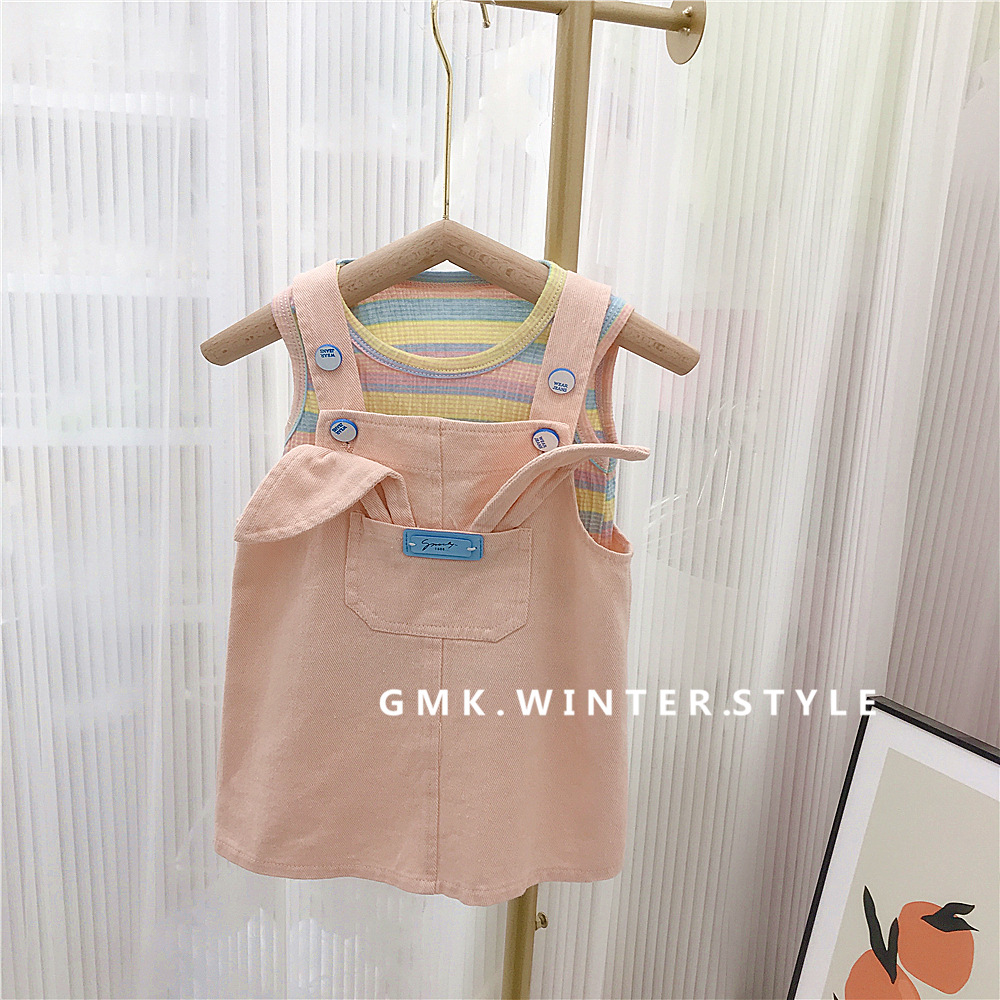 여아 멜빵 스커트 여름 세트 2023 새로운 어린이 세련된 슬립 스커트 투피스 세트 아기 토끼 토끼 스커트 해외 무역스토어 가기