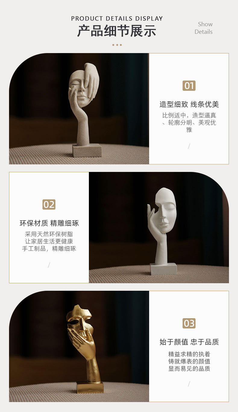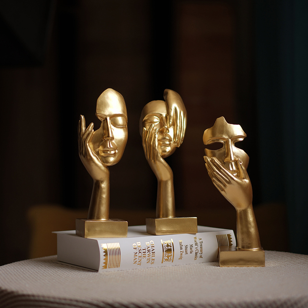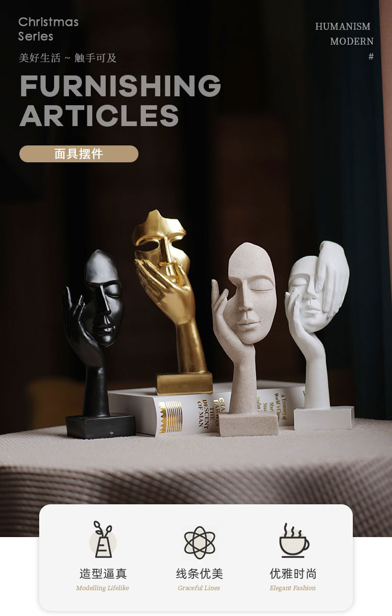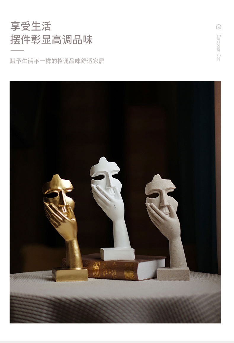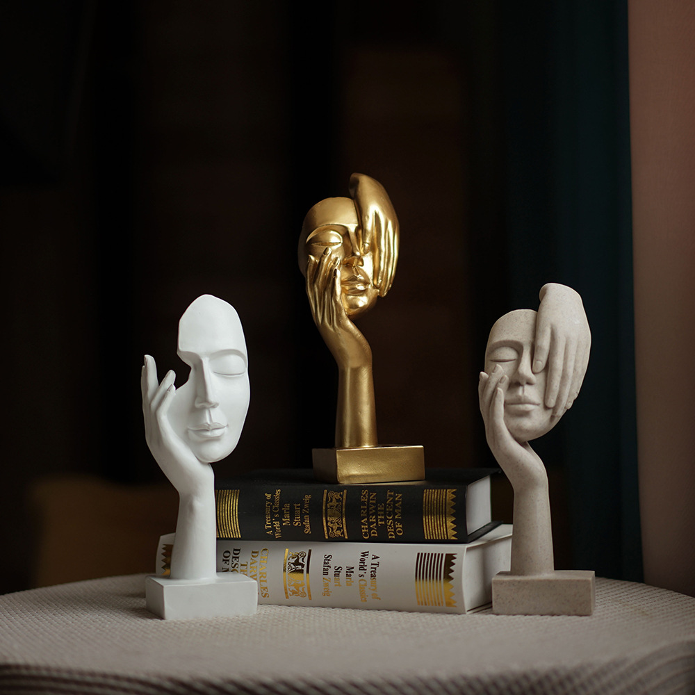 思考者摆件女人脸面具雕塑客厅玄关酒柜人物桌面树脂艺术品工艺品