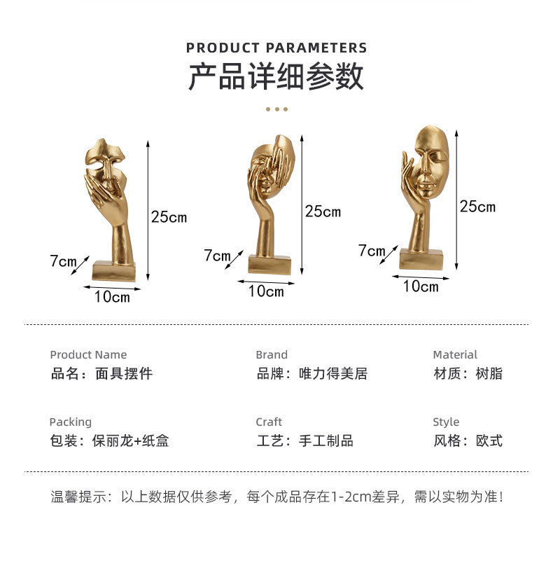 欧式情侣装饰摆件客厅书房创意人物人脸面具艺术品雕塑软装工艺品