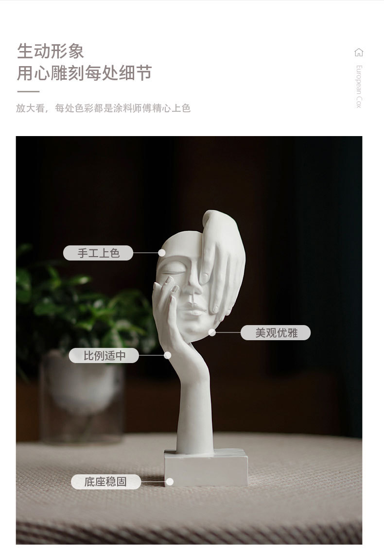 사상가 장식 여자 얼굴 마스크 조각 거실 입구 와인 캐비닛 캐릭터 데스크탑 수지 예술 공예