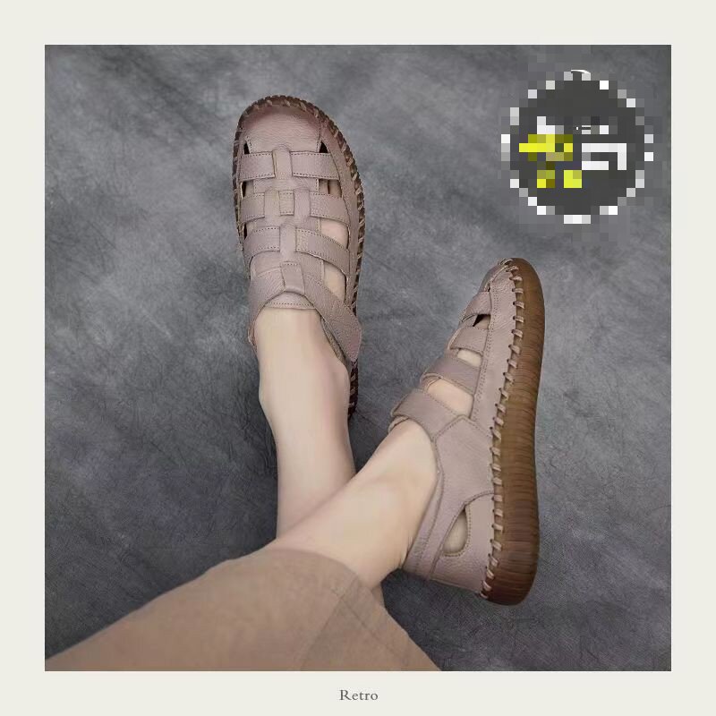 여름 새로운 중년 어머니 샌들 여성 복고풍 중공 여성 신발 패션 단색 후크 및 루프 구멍 신발 도매스토어 가기