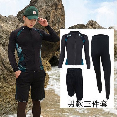 • 녹색 꽃 남성용 쓰리피스 세트 (긴 소매 + 바지 + 비치 팬츠)