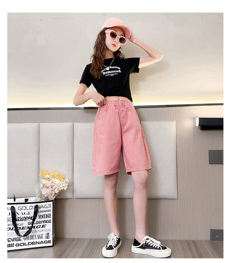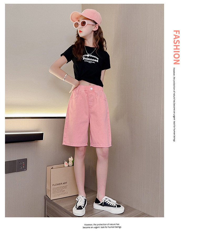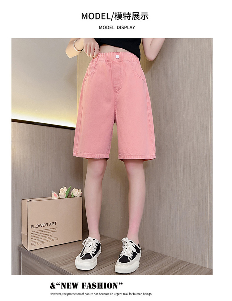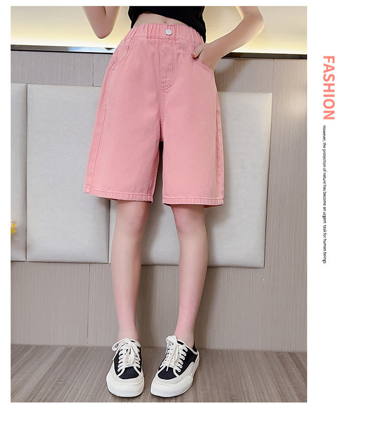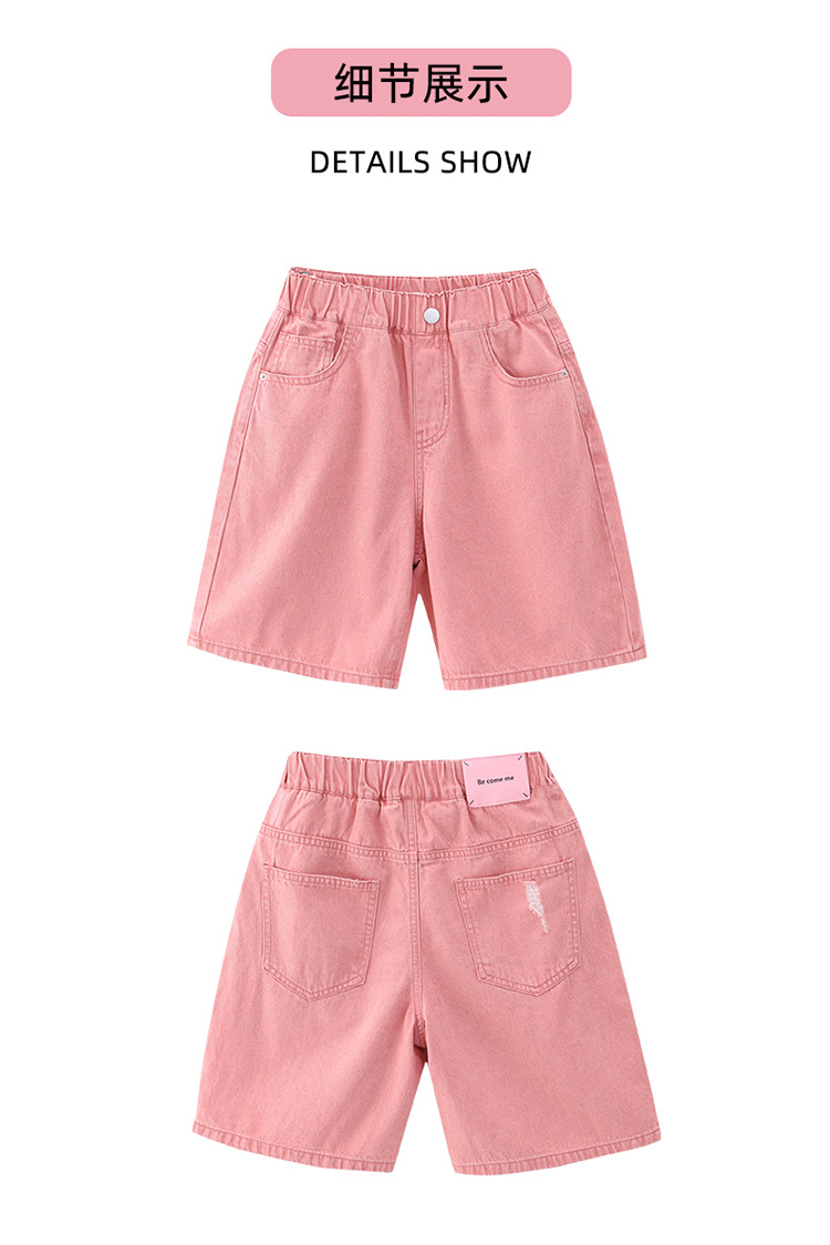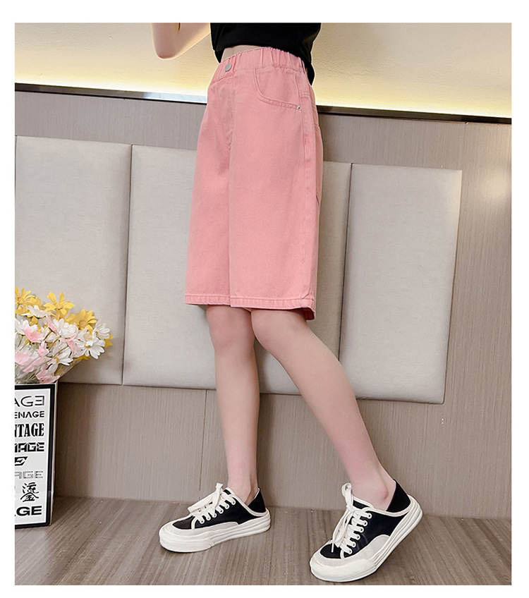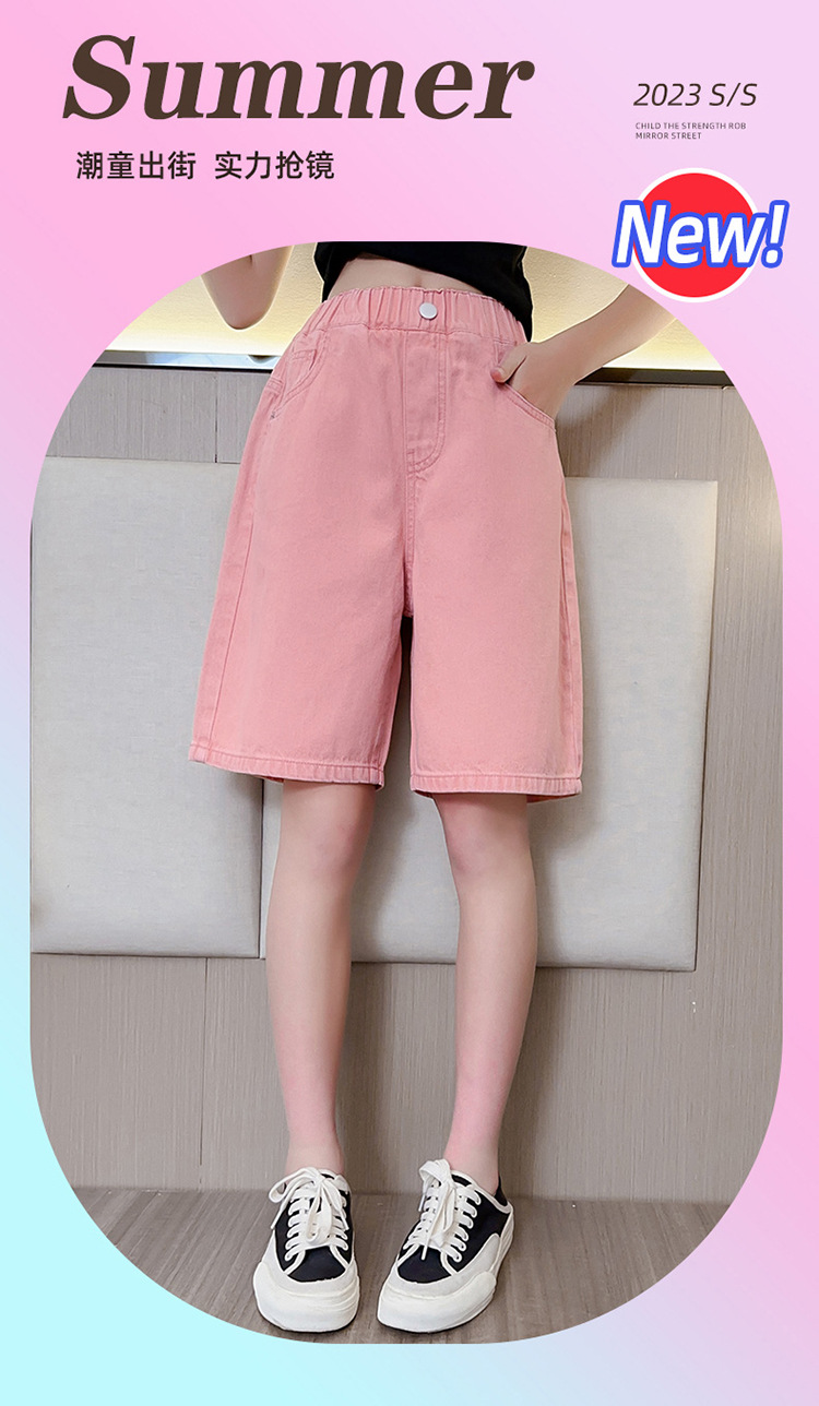 여아 핑크 반바지 여름 2023 새로운 스타일 중형 어린이 웨스턴 스타일 하이 웨이스트 중간 길이 바지 어린이 느슨한 면 5 길이 바지스토어 가기