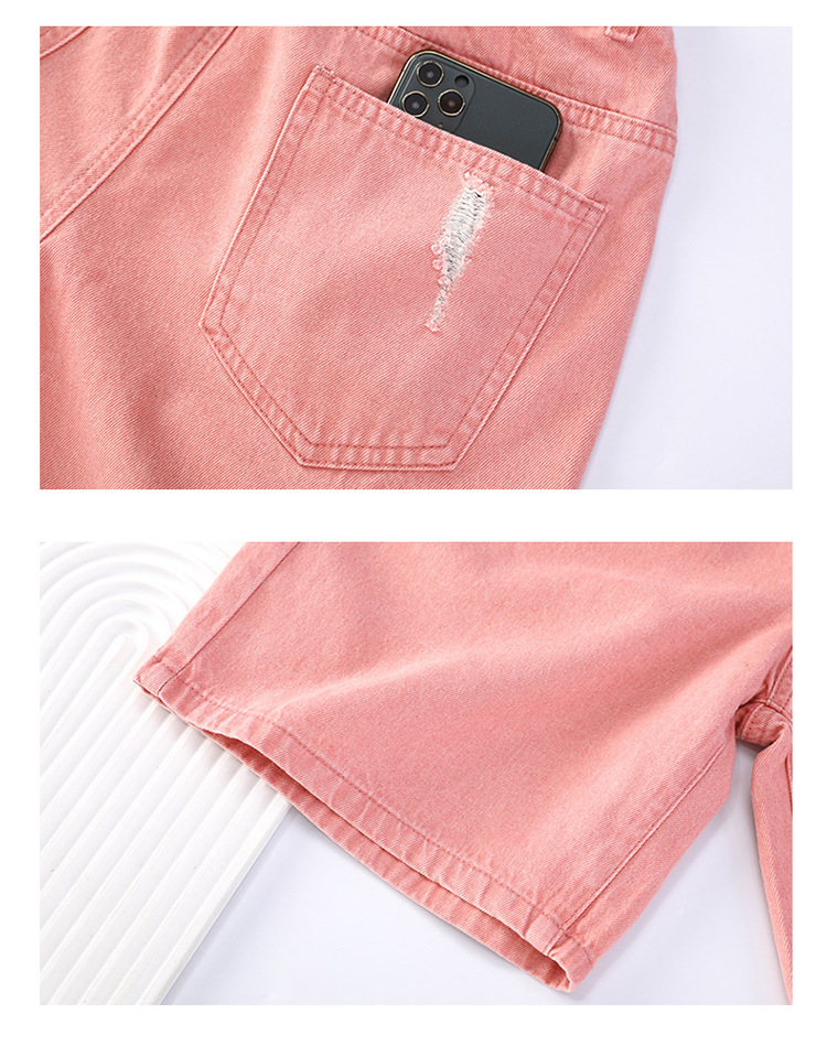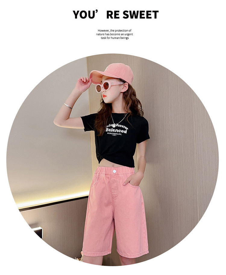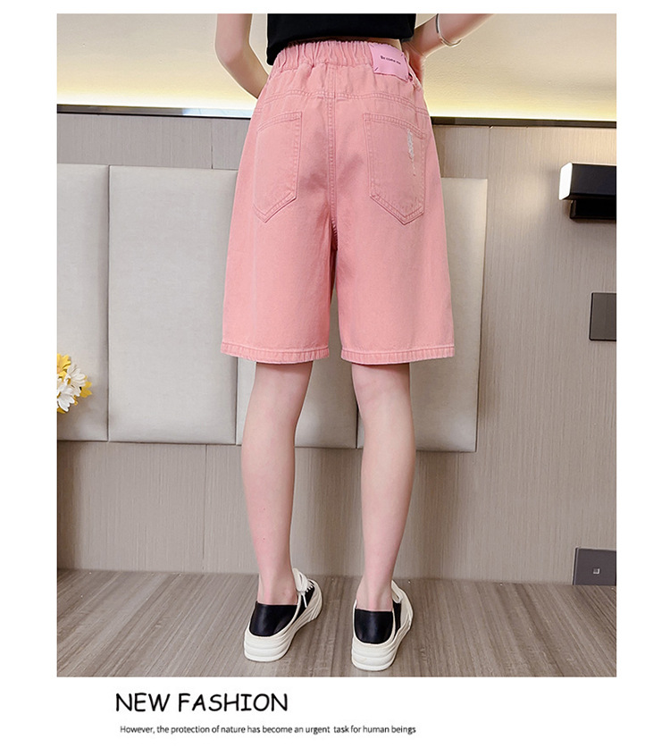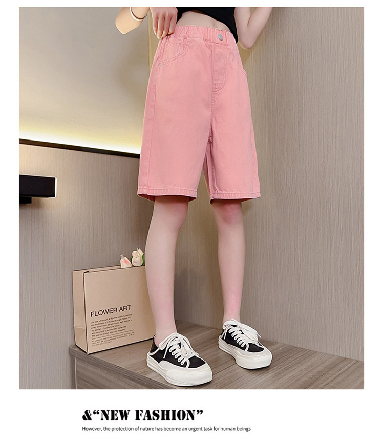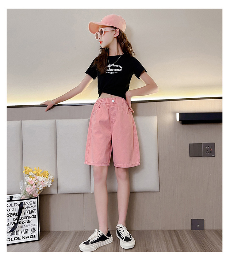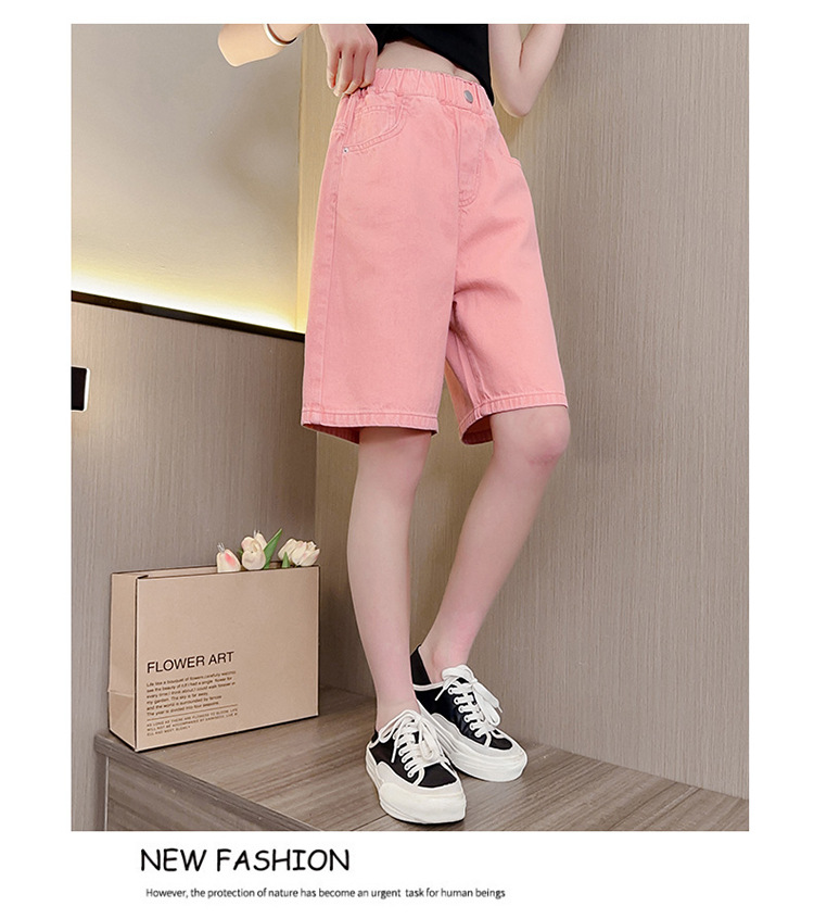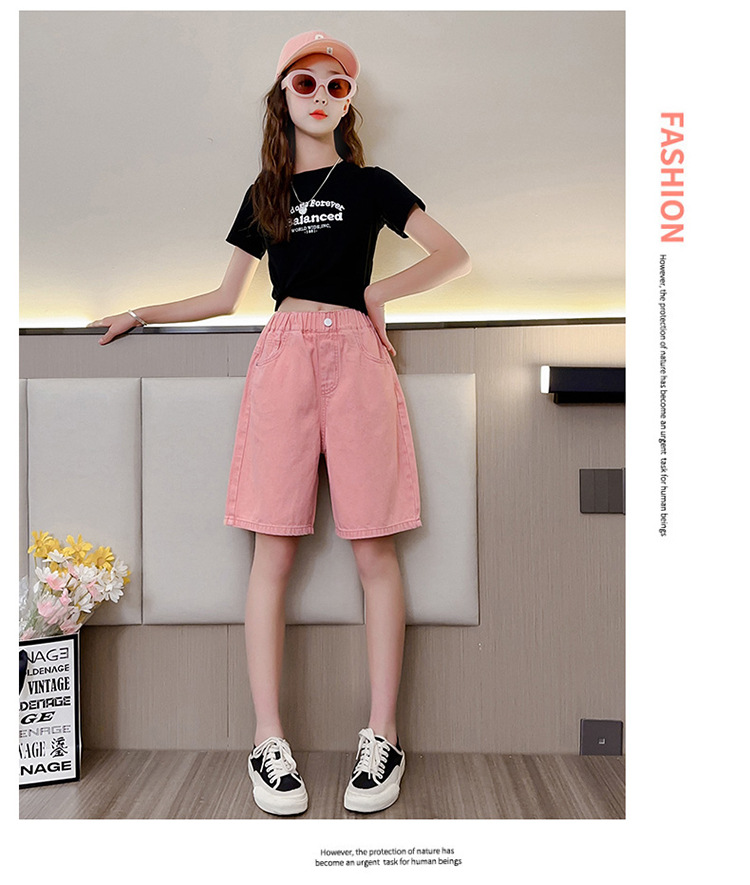 여아 핑크 반바지 여름 2023 새로운 스타일 중형 어린이 웨스턴 스타일 하이 웨이스트 중간 길이 바지 어린이 느슨한 면 5 길이 바지스토어 가기