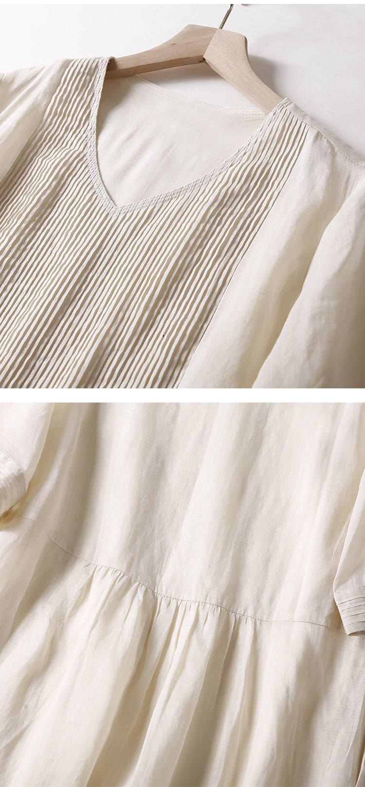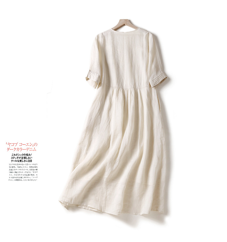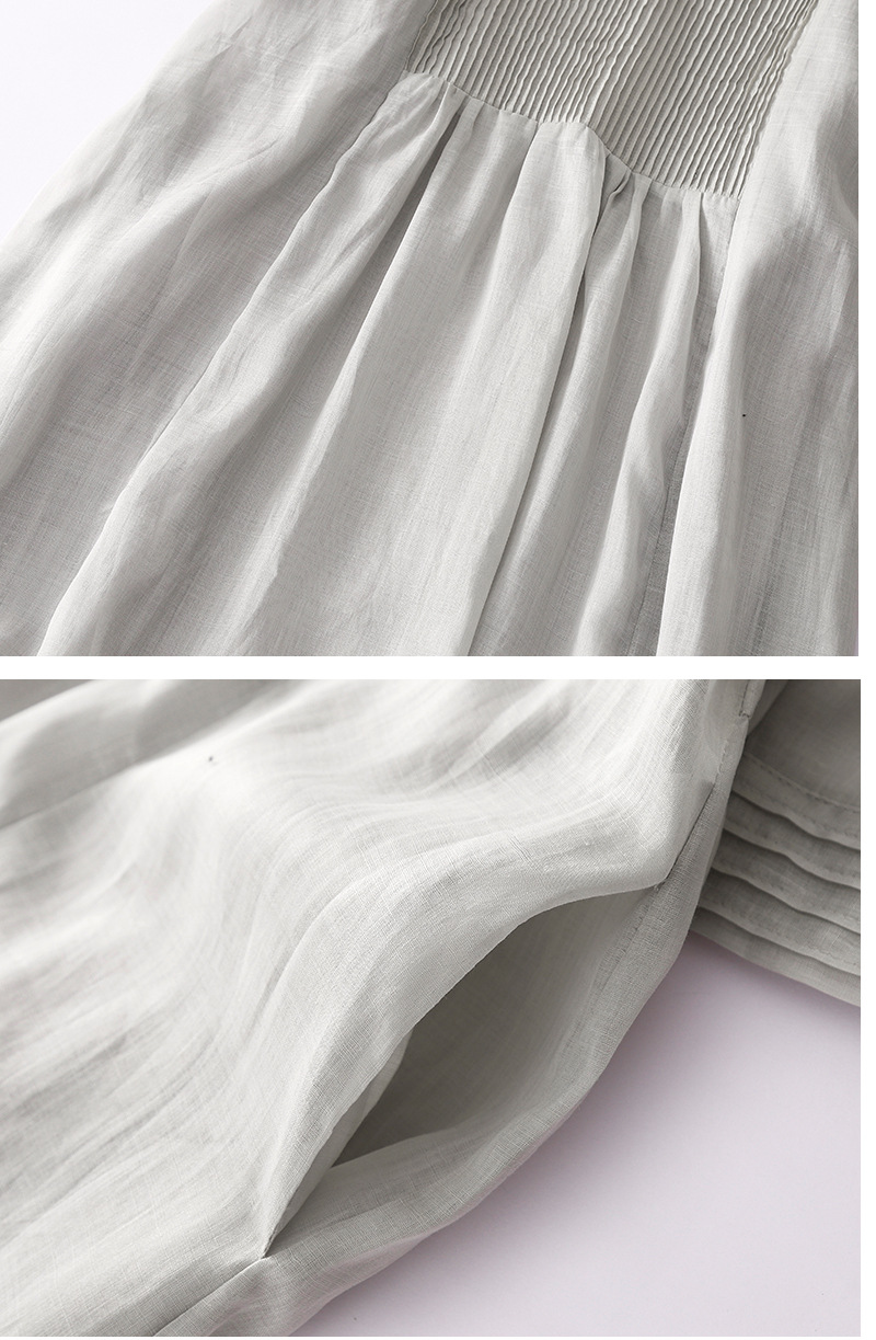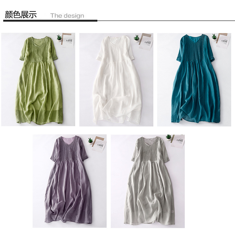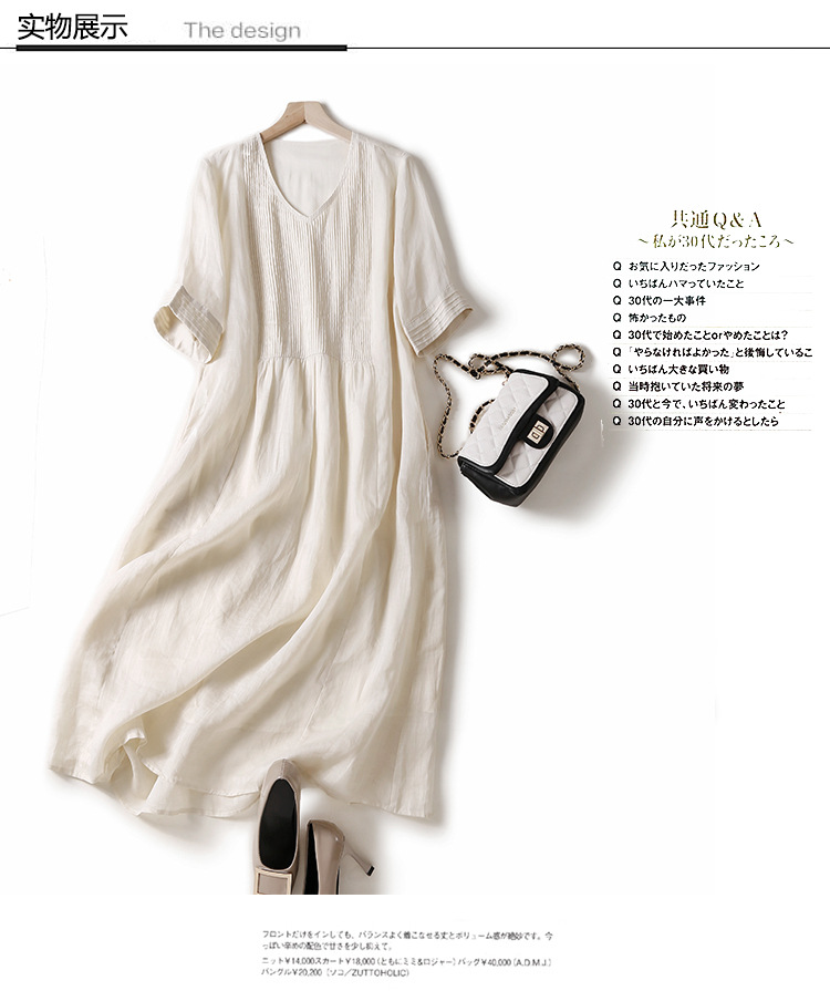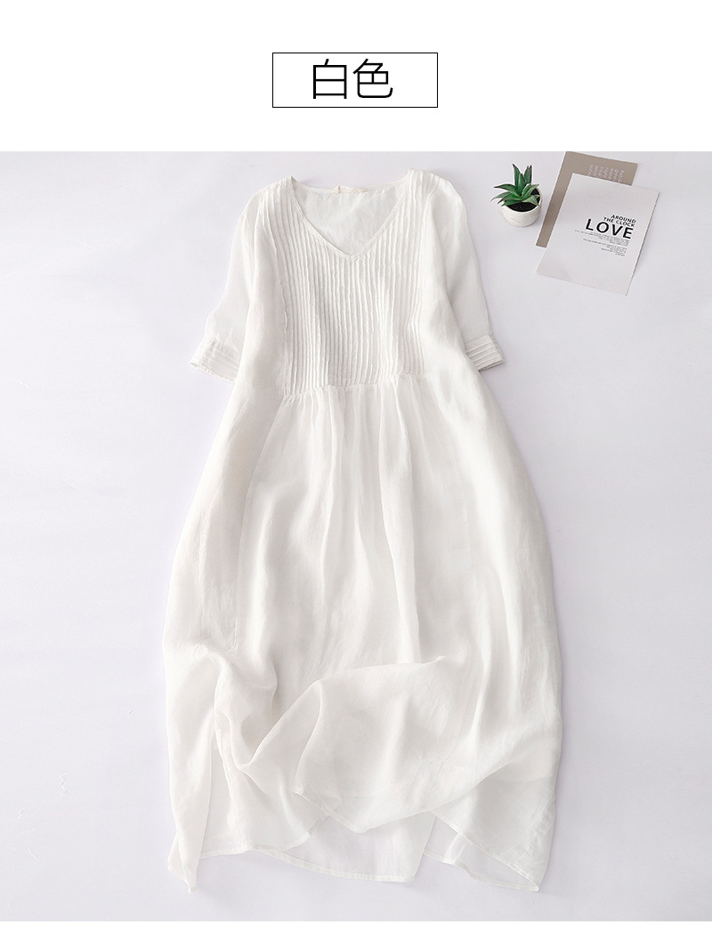빈티지 디자인 감각 오르간 주름 원피스 예술적 단색 V-넥 라미 쿨 슬리밍 긴 원피스 여성용스토어 가기