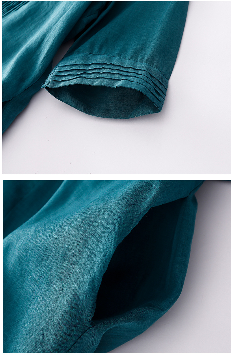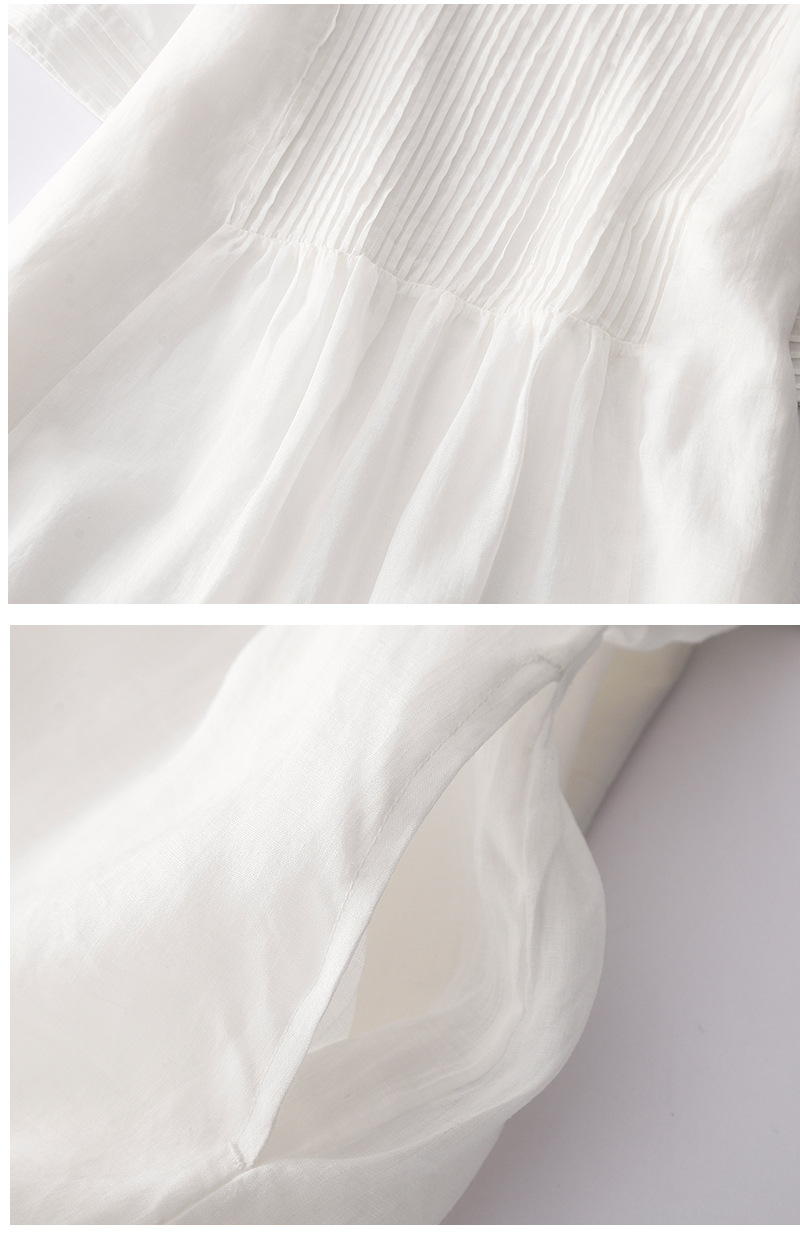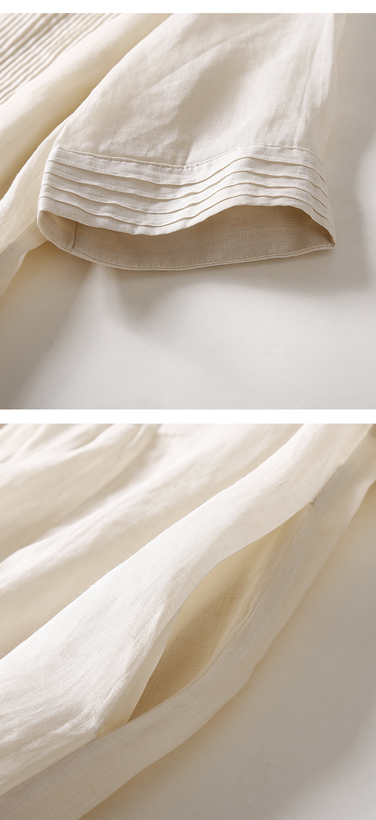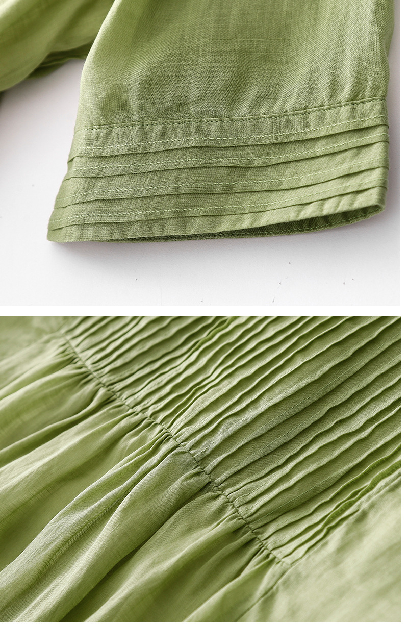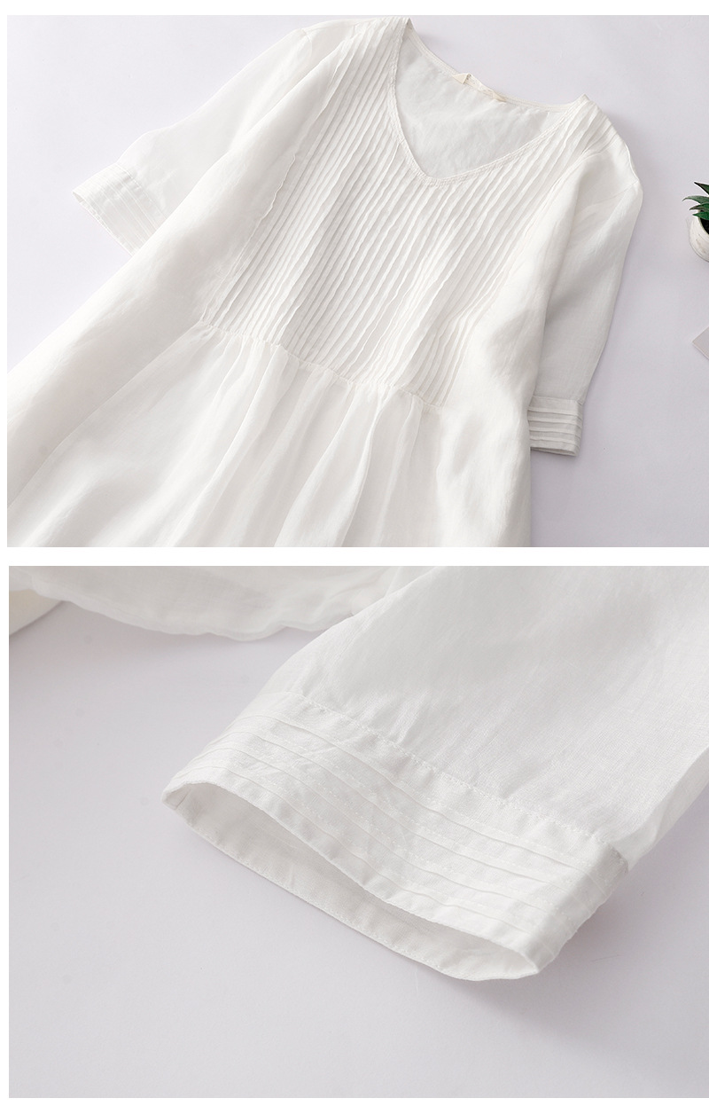 빈티지 디자인 감각 오르간 주름 원피스 예술적 단색 V-넥 라미 쿨 슬리밍 긴 원피스 여성용스토어 가기