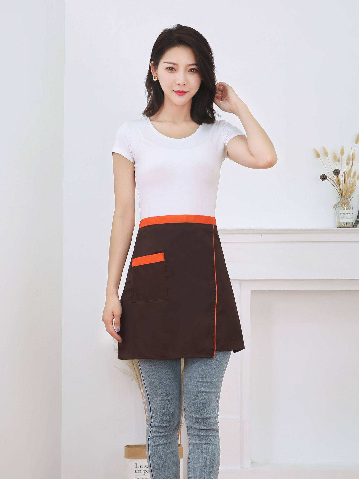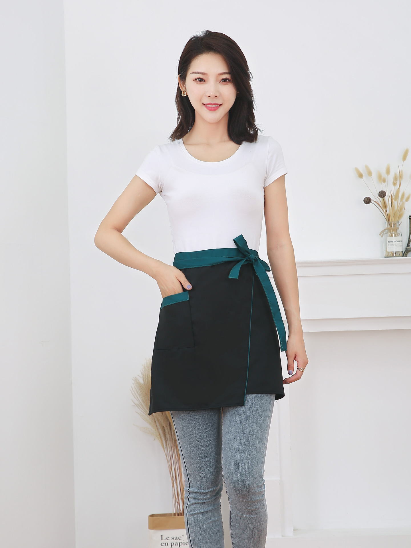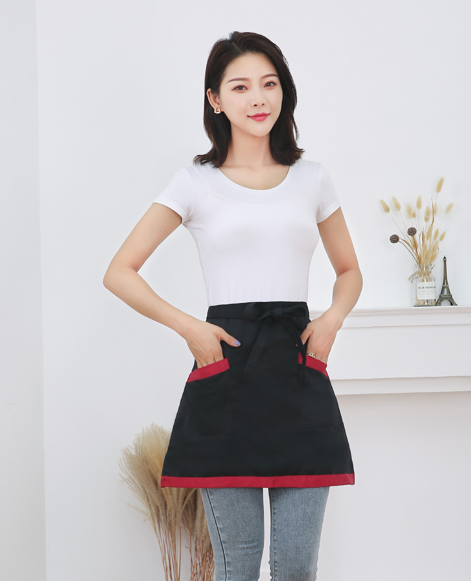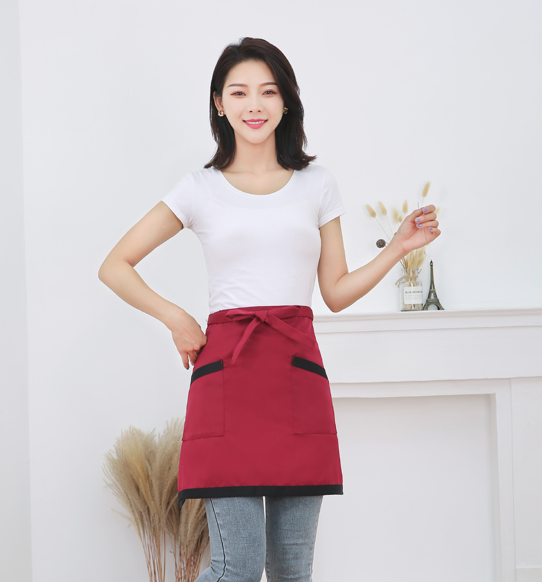 반 길이 짧은 앞치마 레스토랑 키친 커피 숍 웨이터 작업 허리 홈 방오 반 색 맞추기 천