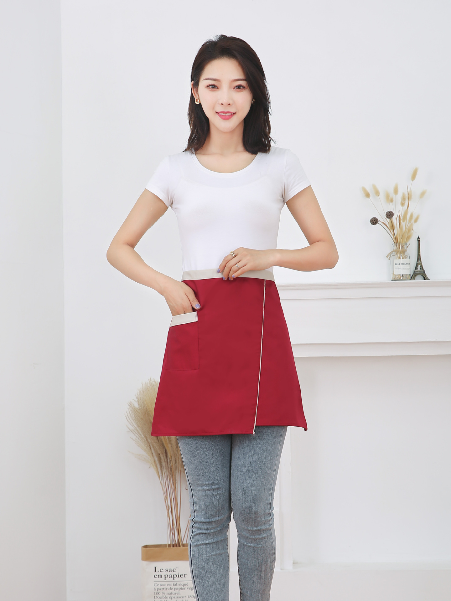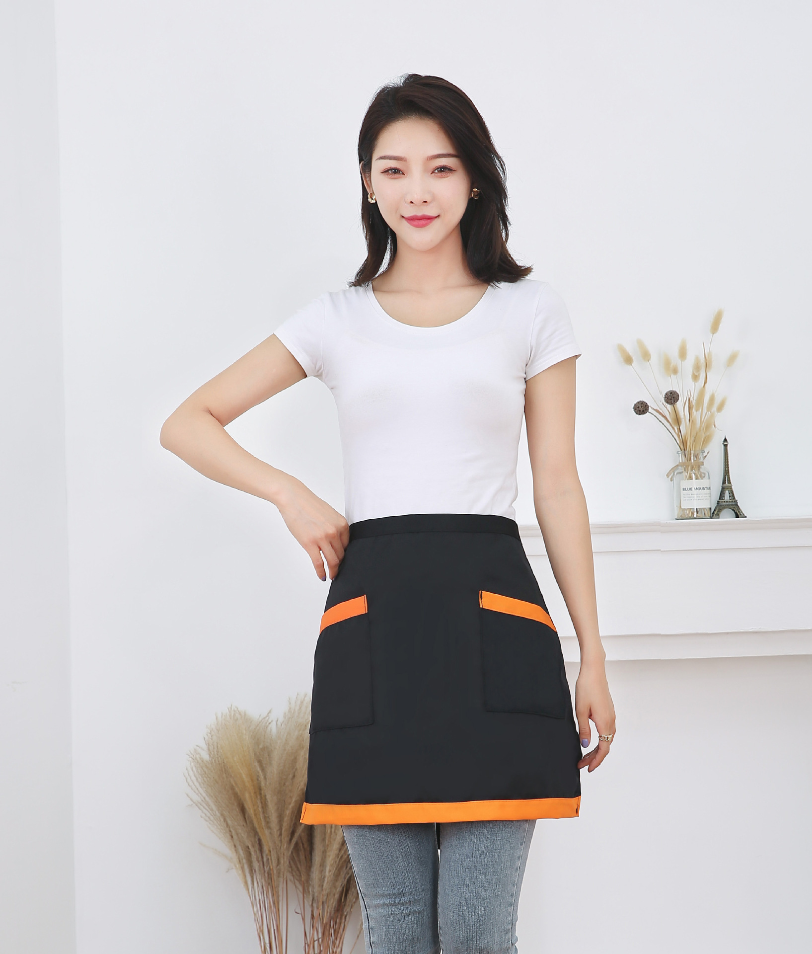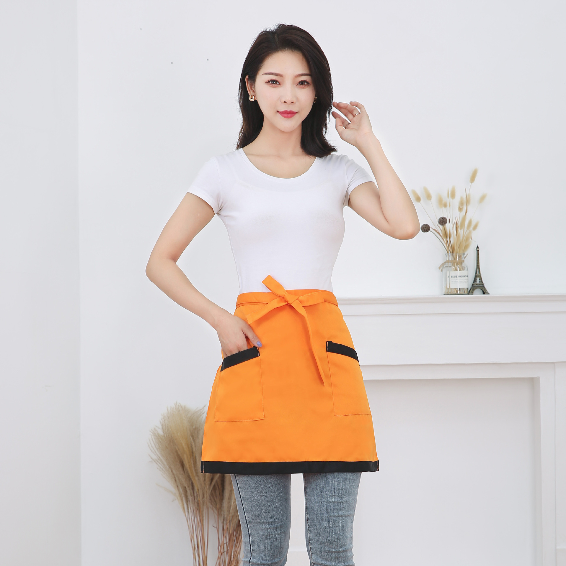 반 길이 짧은 앞치마 레스토랑 키친 커피 숍 웨이터 작업 허리 홈 방오 반 색 맞추기 천스토어 가기