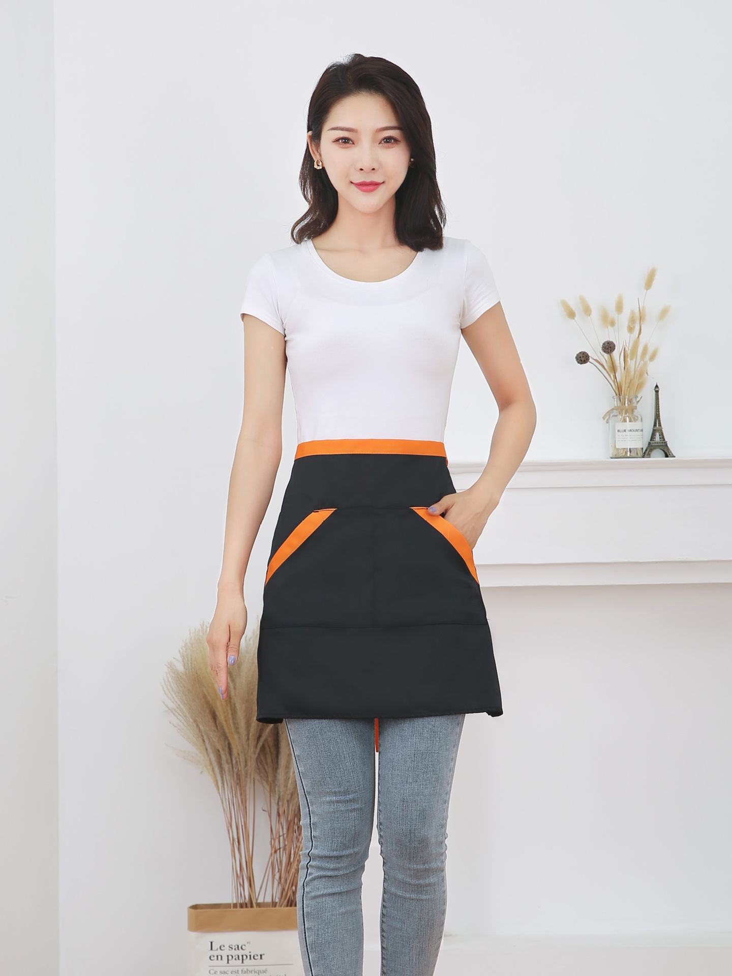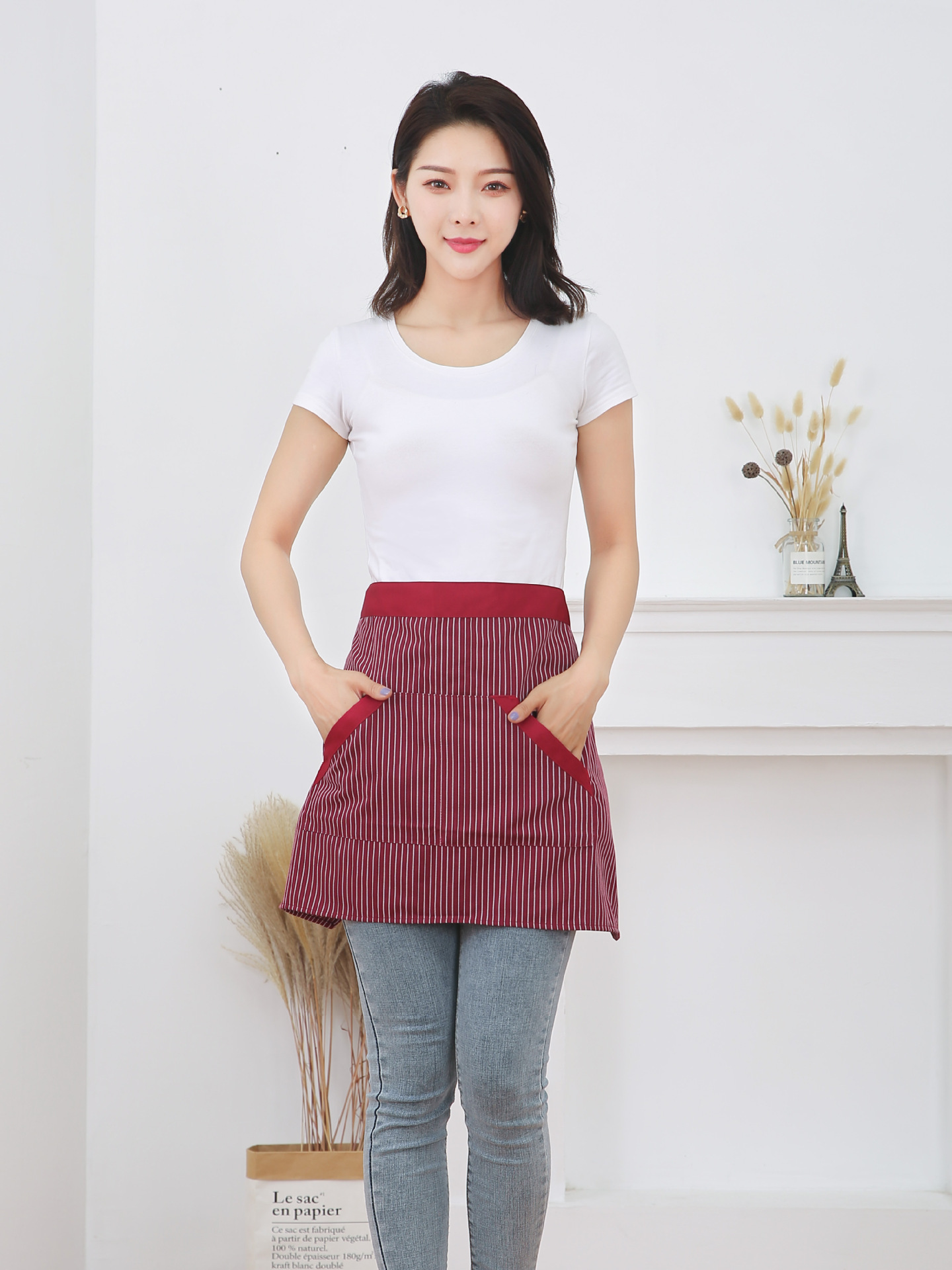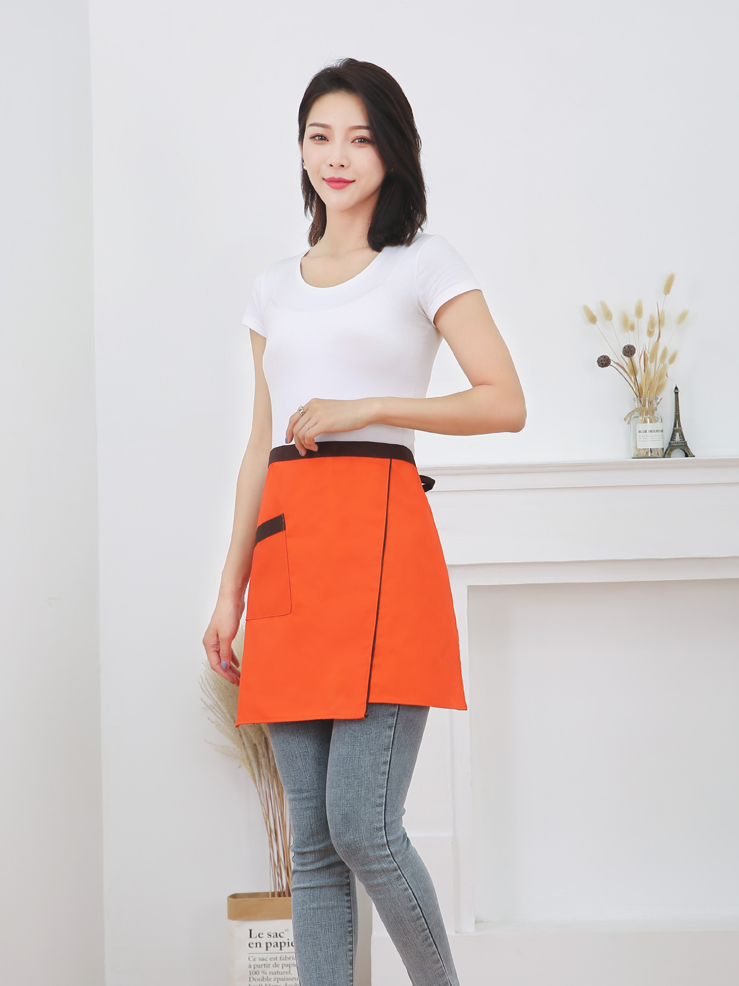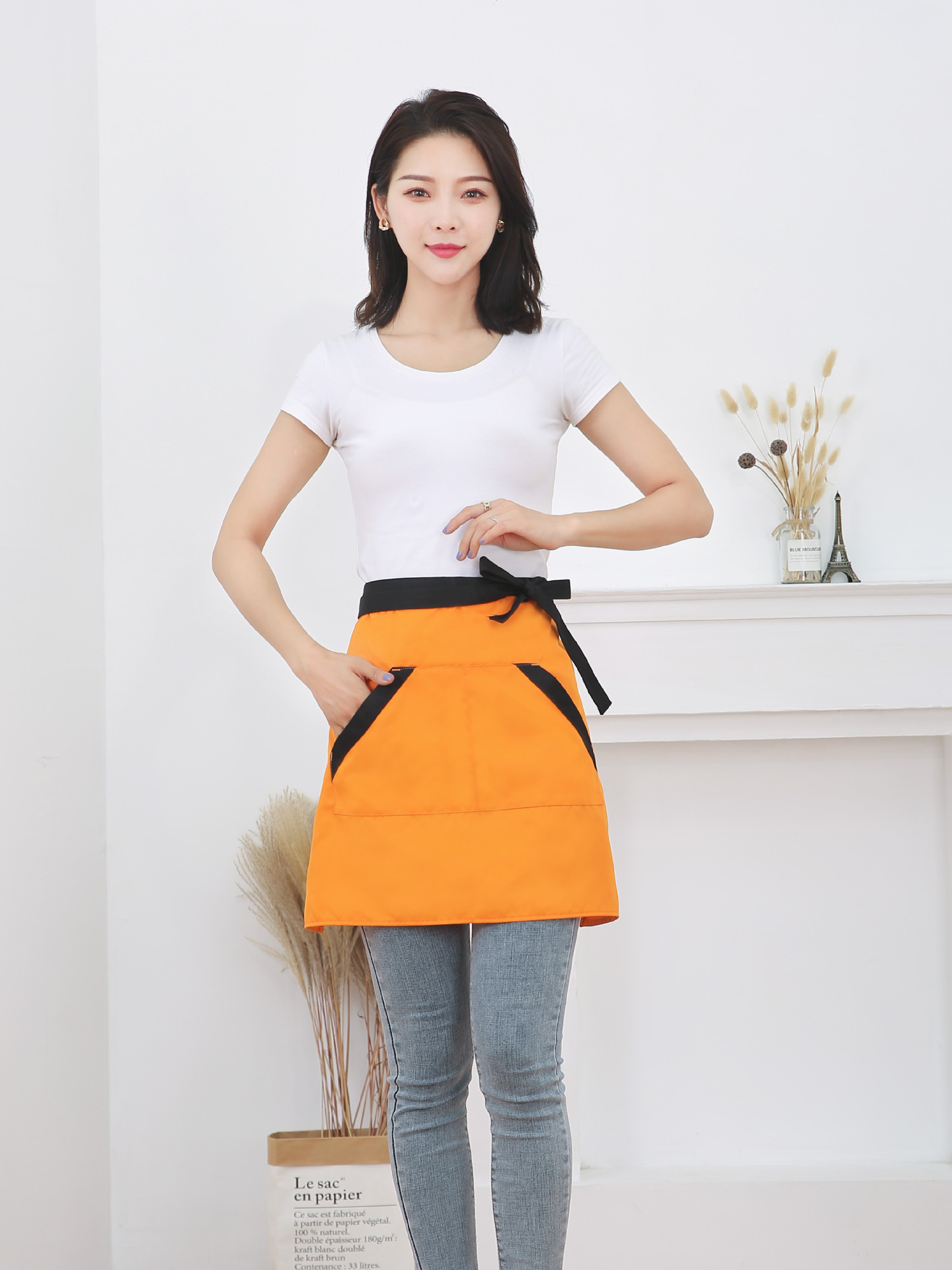 반 길이 짧은 앞치마 레스토랑 키친 커피 숍 웨이터 작업 허리 홈 방오 반 색 맞추기 천스토어 가기