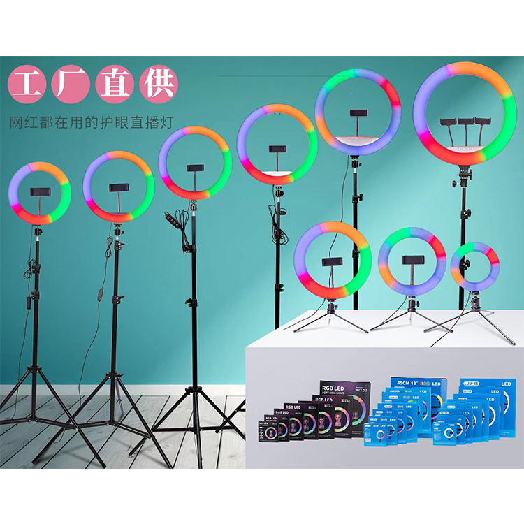 RGB 다채로운 라이브 라이트 6 인치 10 인치 13 인치 14 인치 18 인치 22 인치 네트 레드 필 라이트 사진 라이트 링 라이트스토어 가기