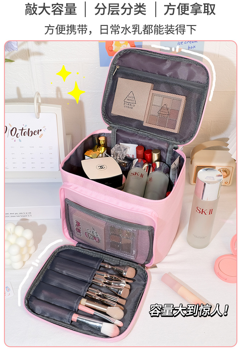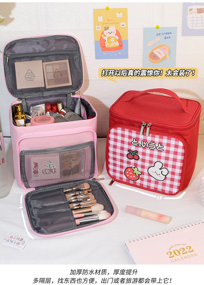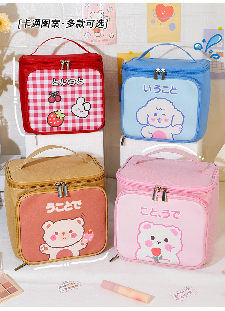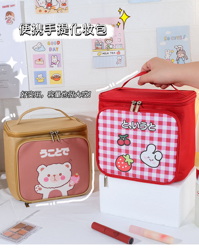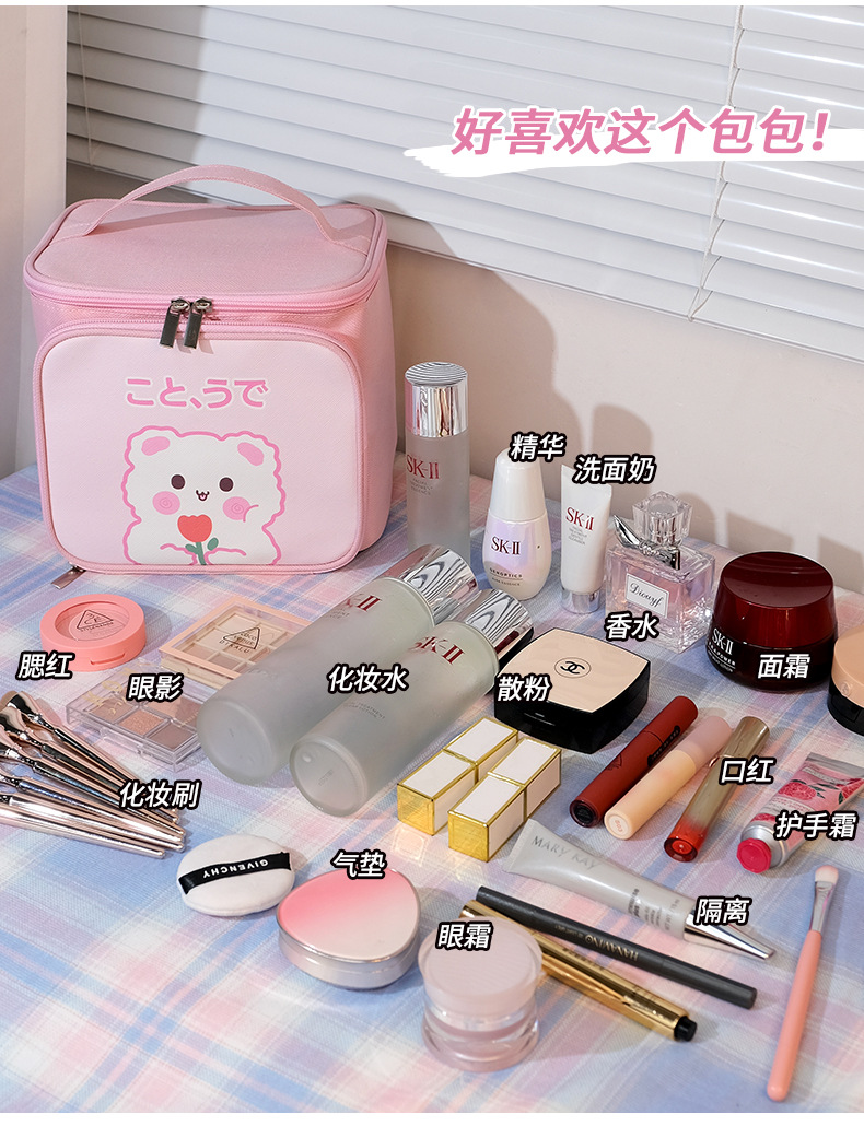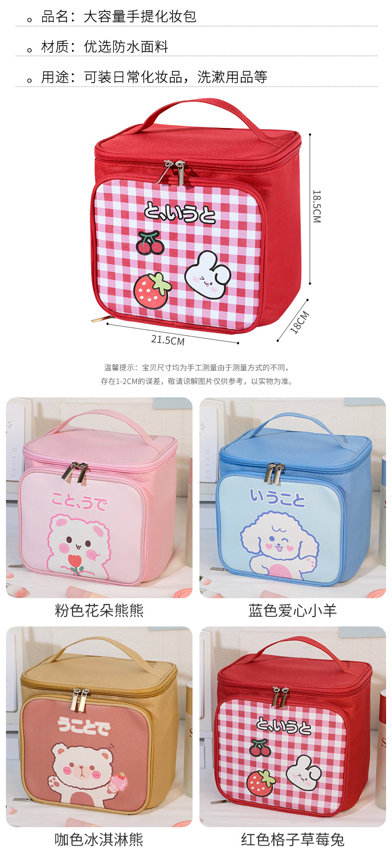 큰 용량 인 스타일 귀여운 만화 화장품 가방 2023 새로운 높은 찾고 휴대용 여행 보관 세척 가방스토어 가기