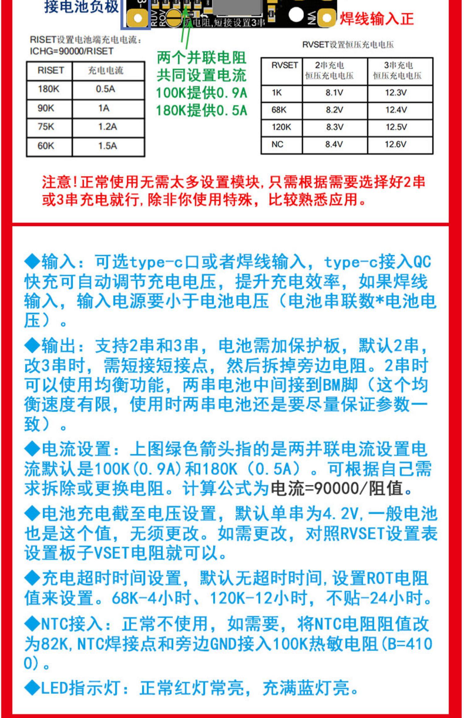 充电只看蓝灯就行,充电蓝灯亮,充满蓝灯灭 电池必须带保护板,防止过充