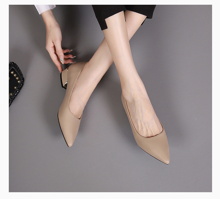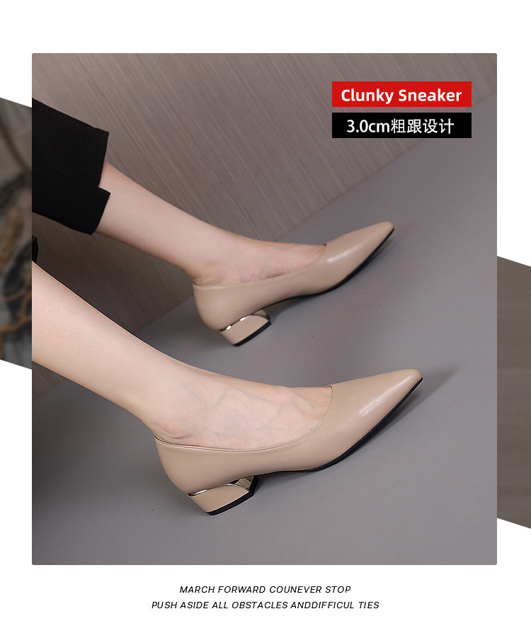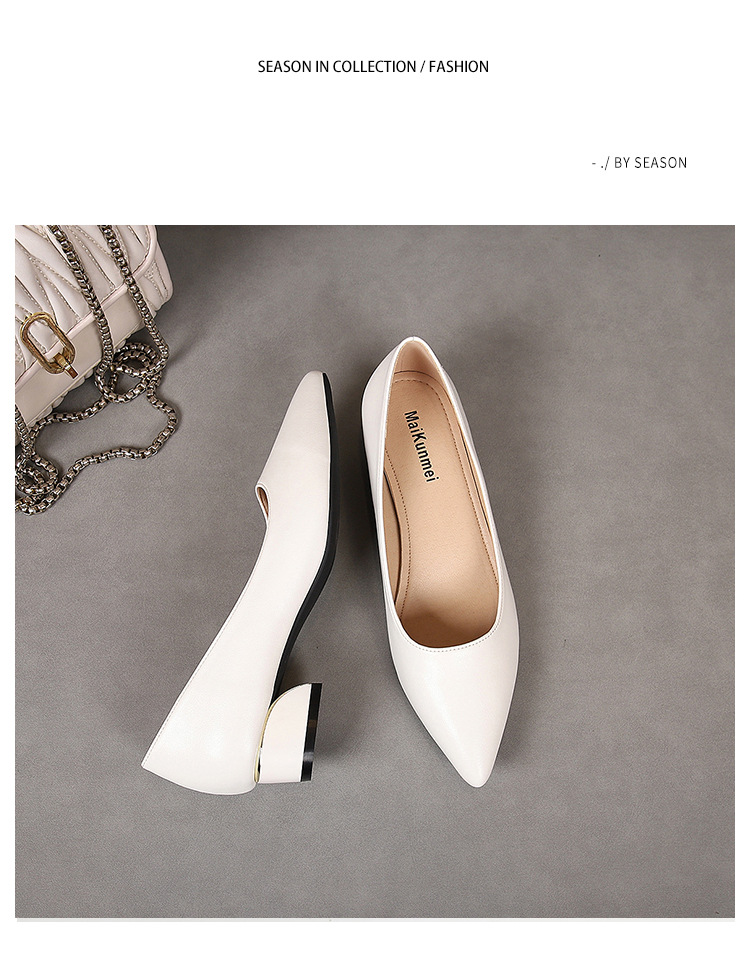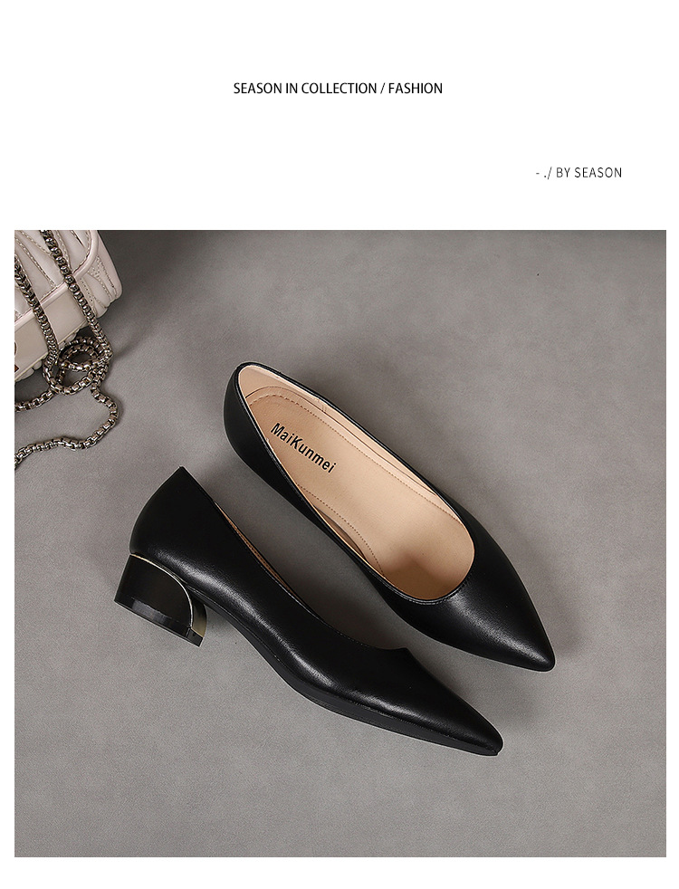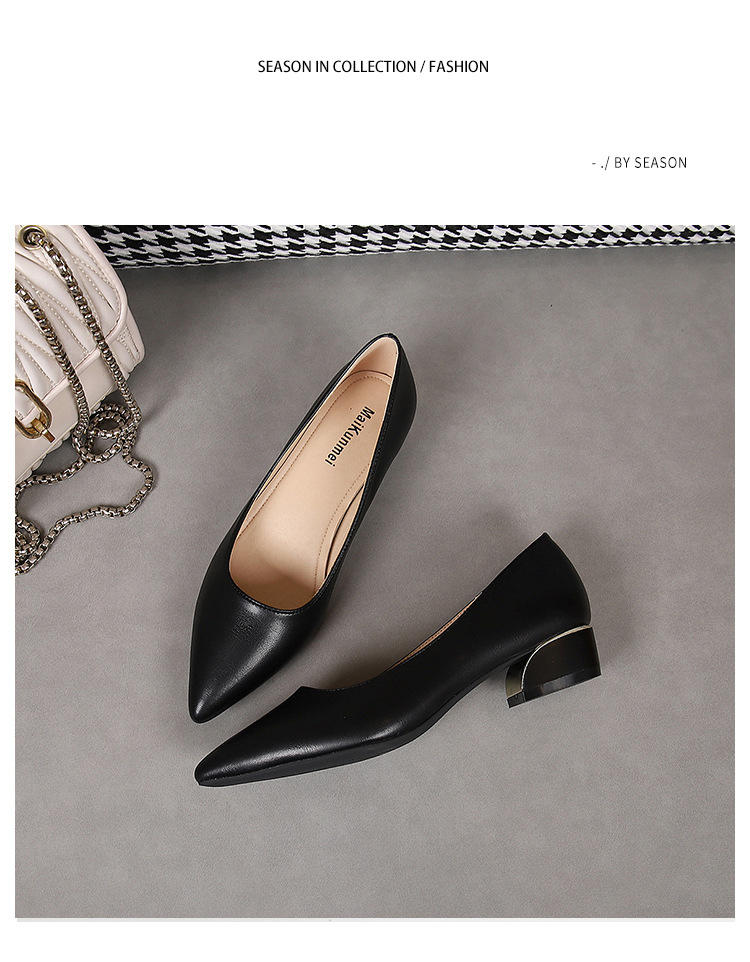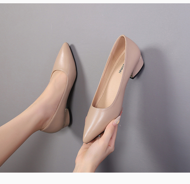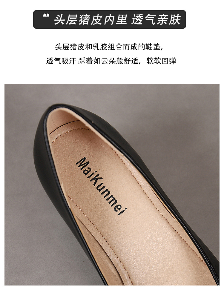 봄과 가을 새로운 한국 스타일 두꺼운 뒤꿈치 플랫 세련된 올 매치 소프트 가죽 작업 전문 싱글 레이어 신발