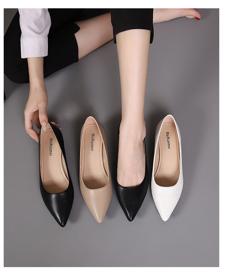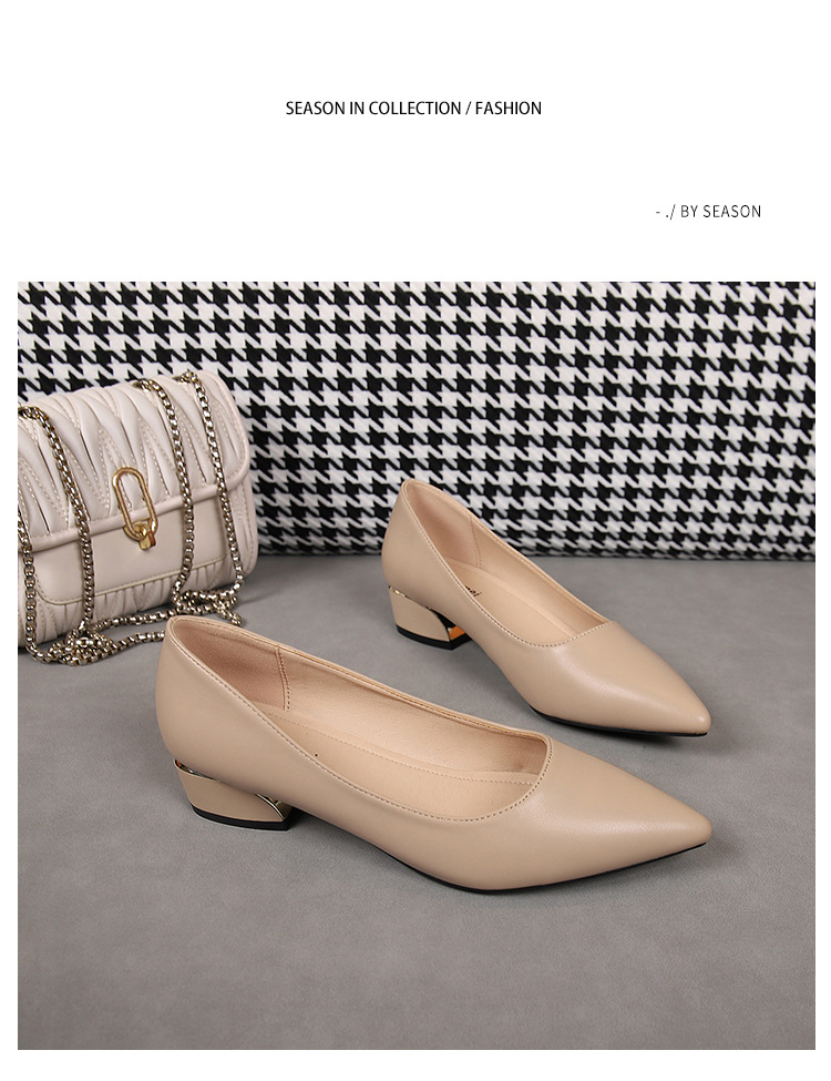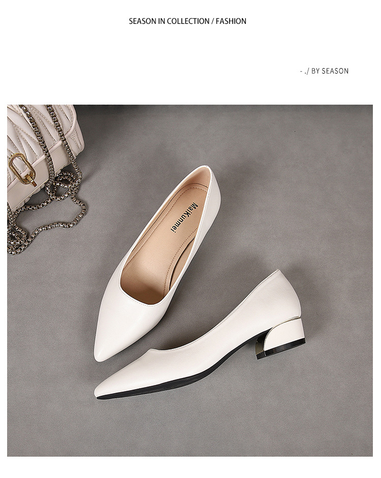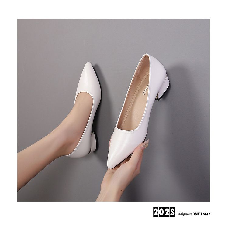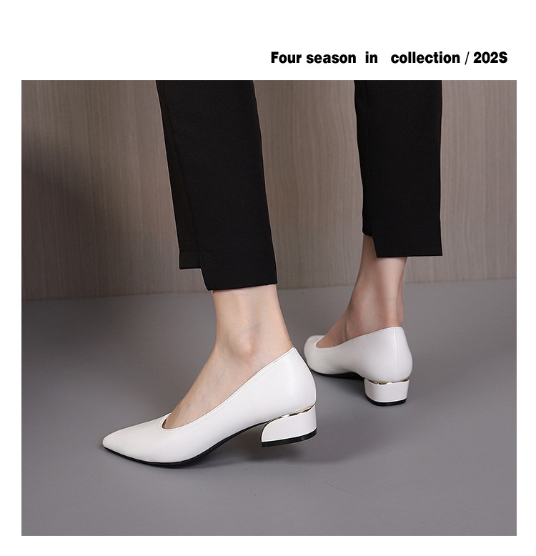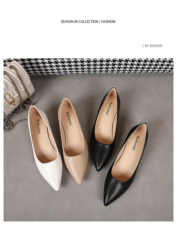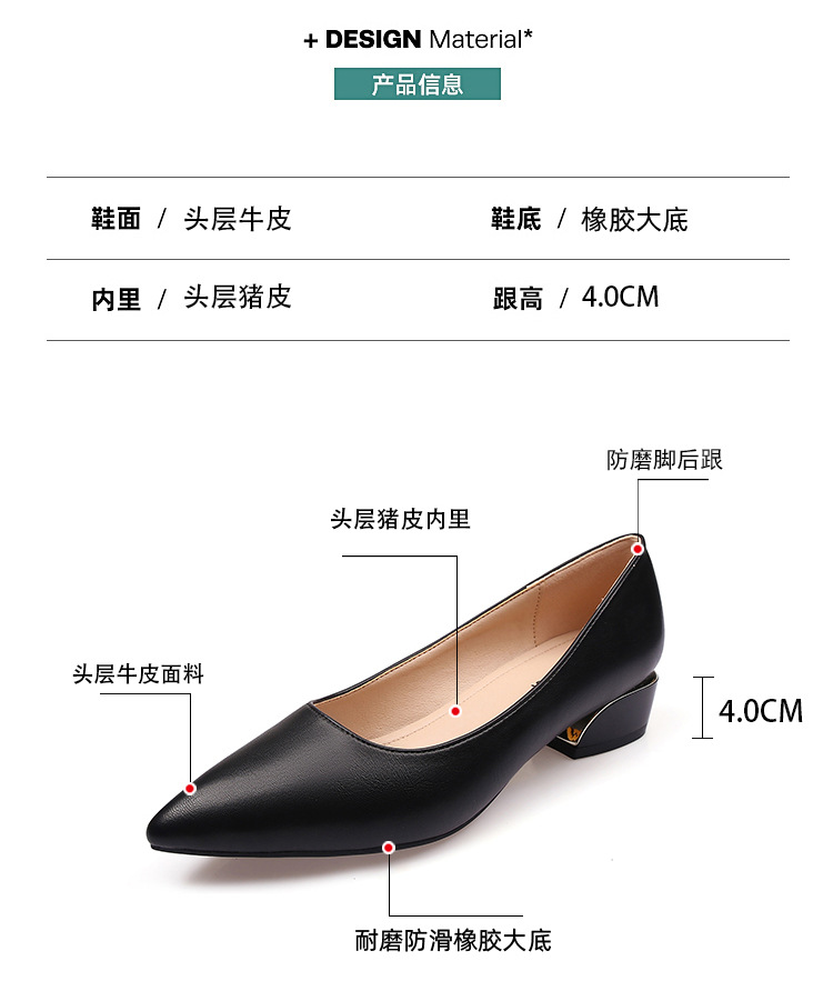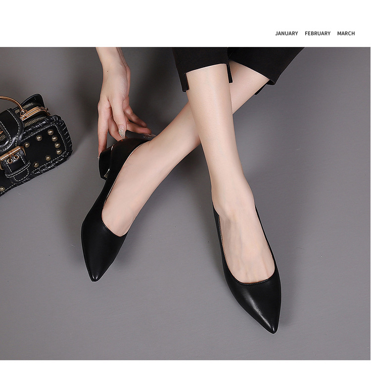 봄과 가을 새로운 한국 스타일 두꺼운 뒤꿈치 플랫 세련된 올 매치 소프트 가죽 작업 전문 싱글 레이어 신발