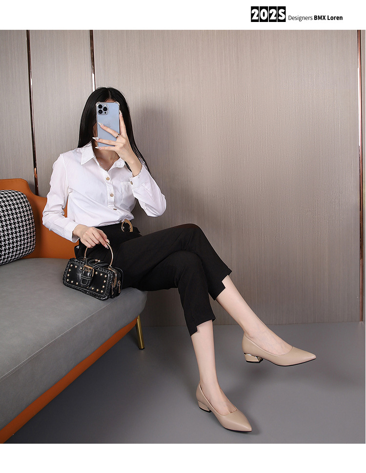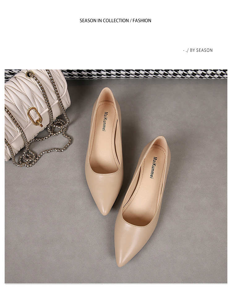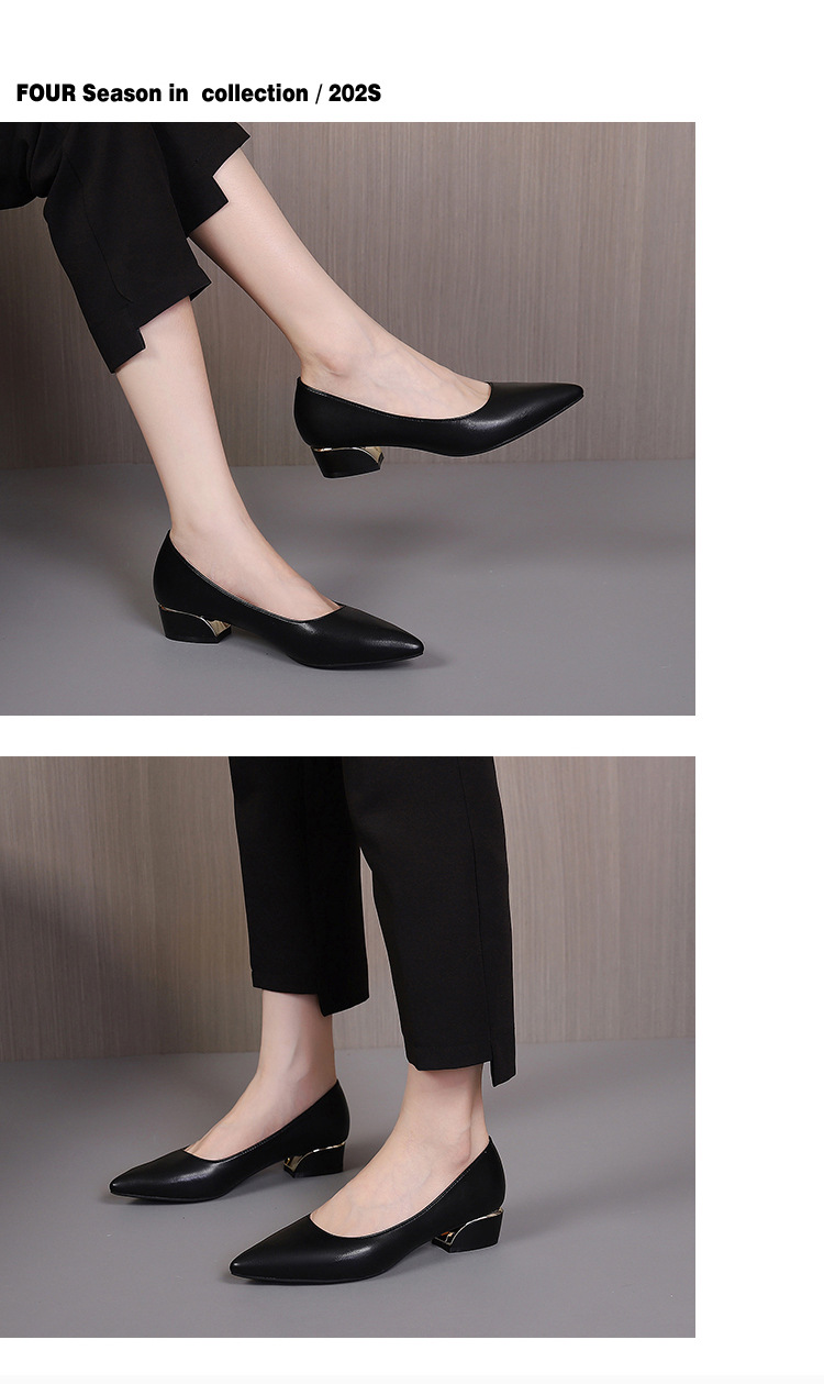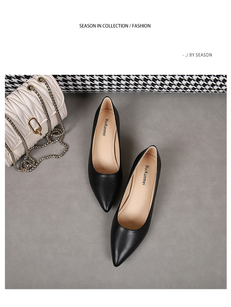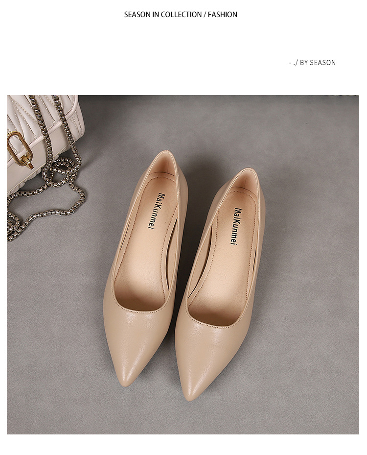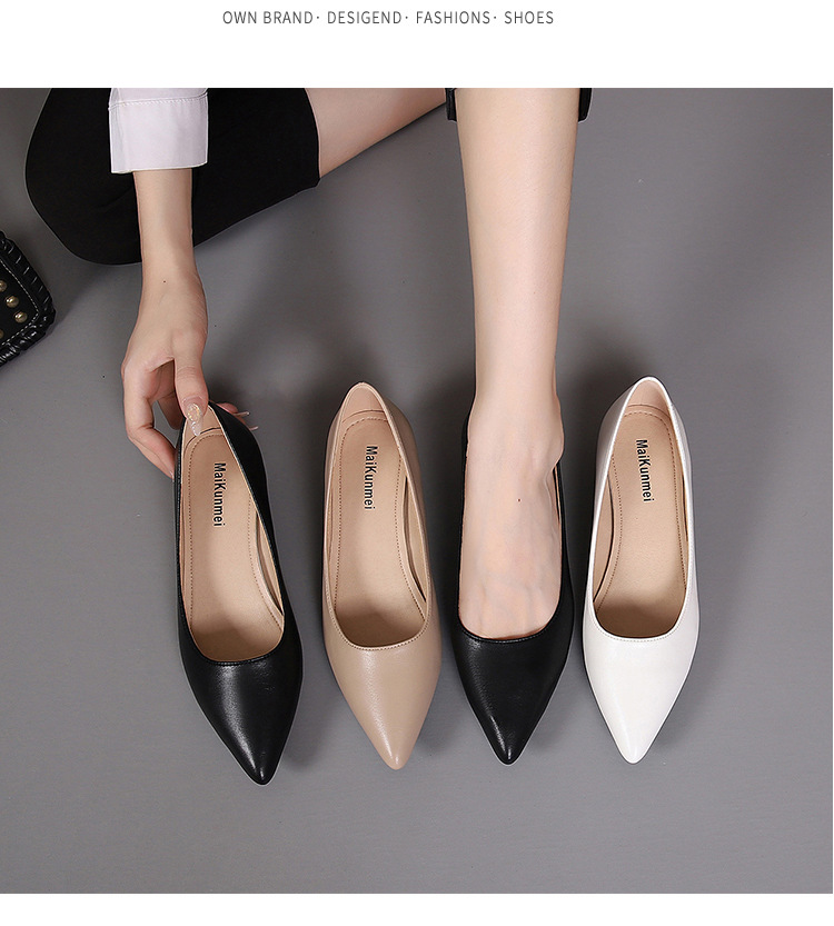봄과 가을 새로운 한국 스타일 두꺼운 뒤꿈치 플랫 세련된 올 매치 소프트 가죽 작업 전문 싱글 레이어 신발