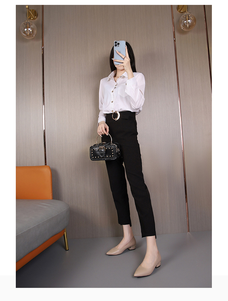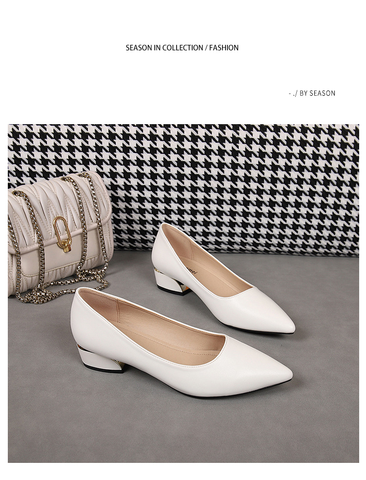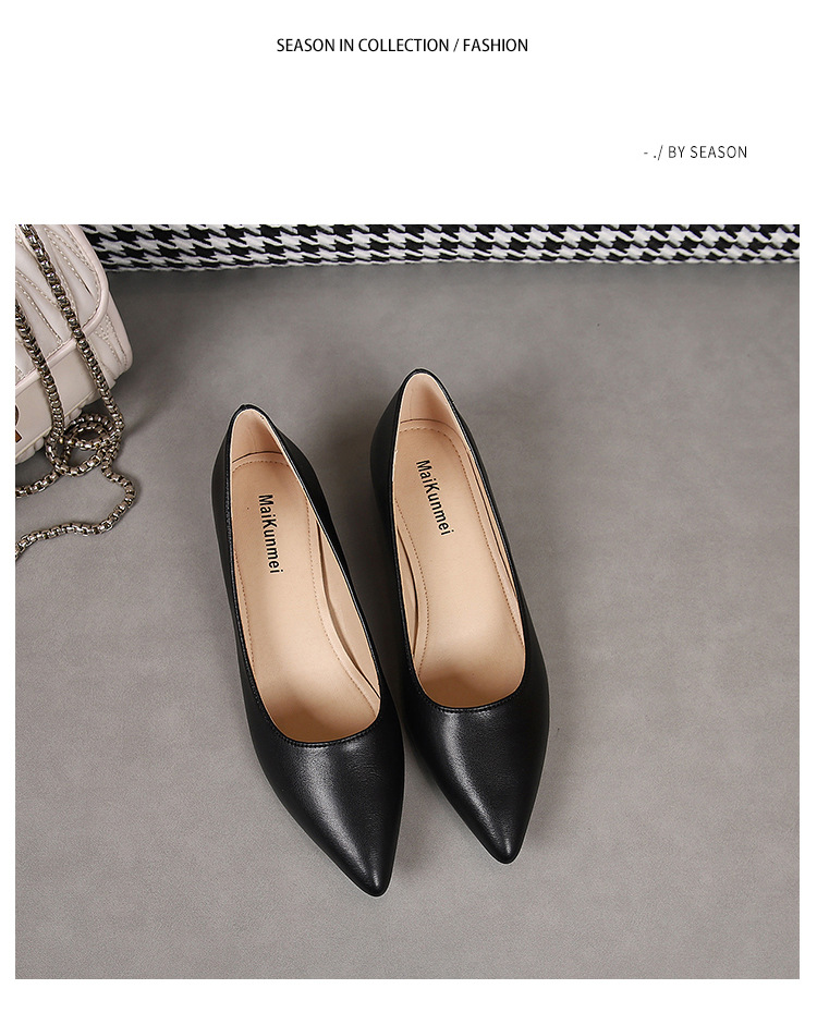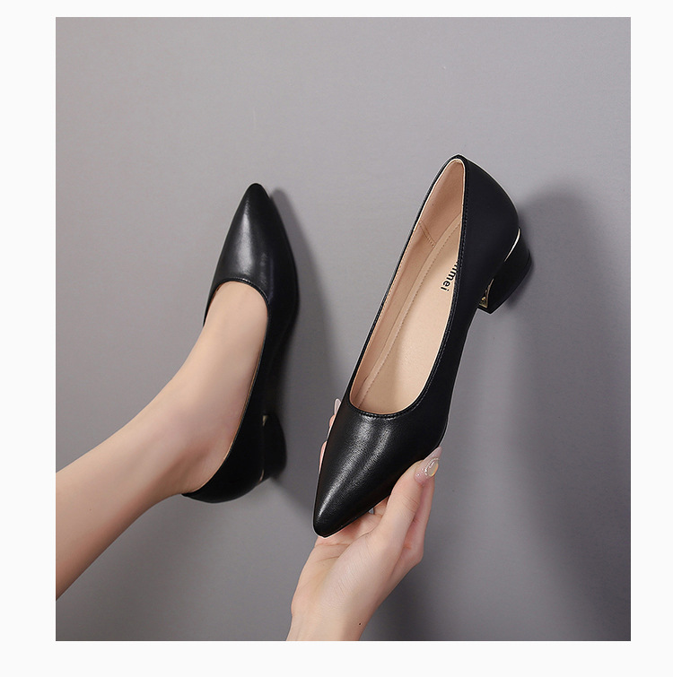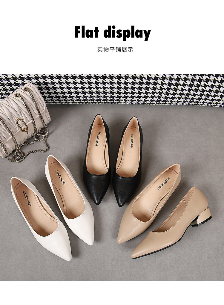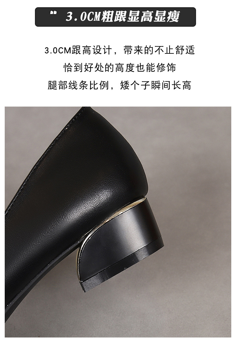 봄과 가을 새로운 한국 스타일 두꺼운 뒤꿈치 플랫 세련된 올 매치 소프트 가죽 작업 전문 싱글 레이어 신발스토어 가기
