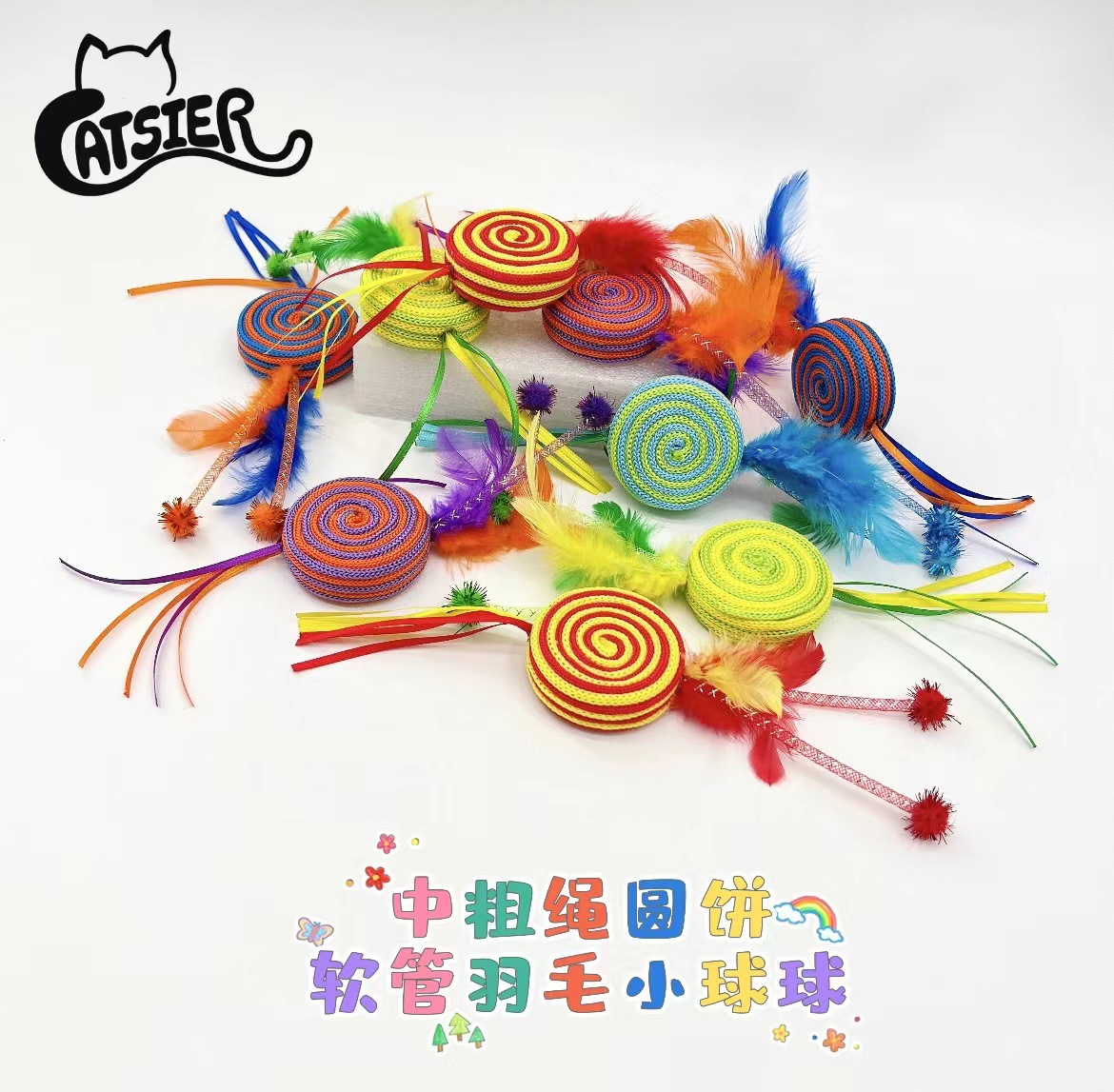 제조업체의 기성품 도매 중형 두꺼운 끈 원형 고양이 장난감, 고양이 놀리기 및 털 긁기용 인터랙티브 애완동물 장난감, 애완용품스토어 가기