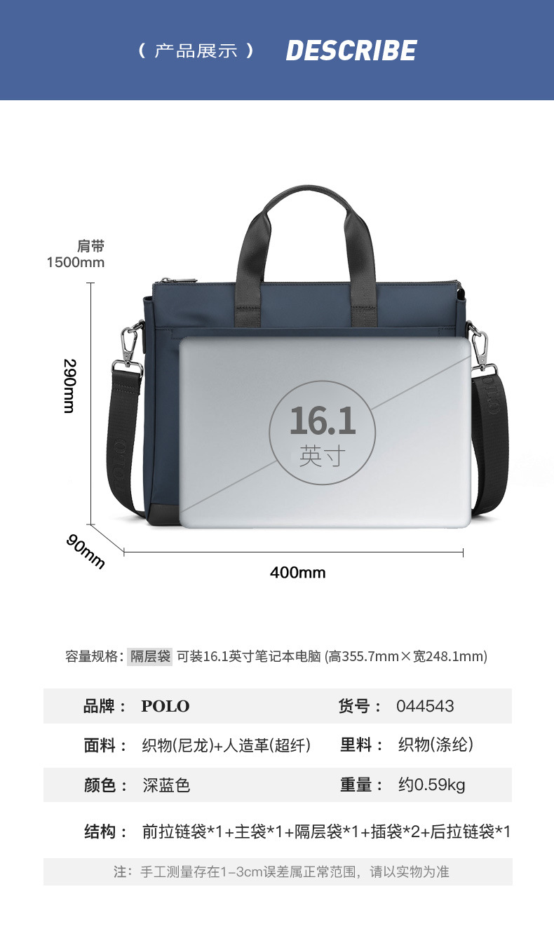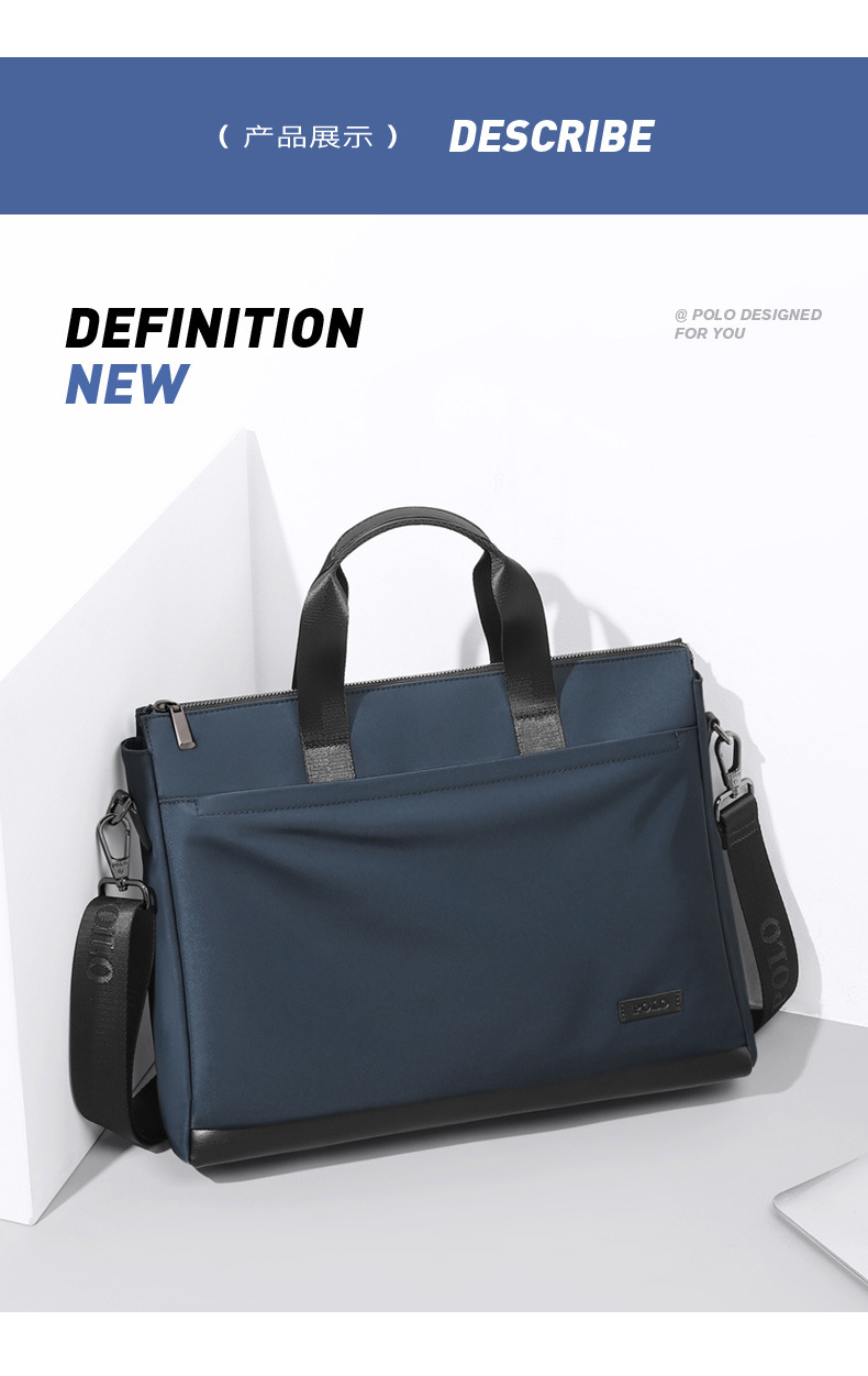 POLO 서류 가방 남성 비즈니스 간단한 다기능 숄더 크로스 바디 백 컴퓨터 가방 여행 나일론 남성 핸드백