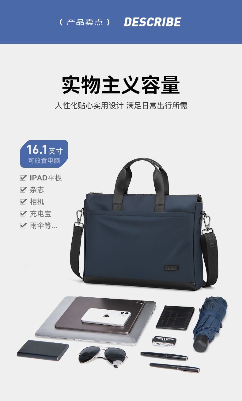 POLO 서류 가방 남성 비즈니스 간단한 다기능 숄더 크로스 바디 백 컴퓨터 가방 여행 나일론 남성 핸드백스토어 가기