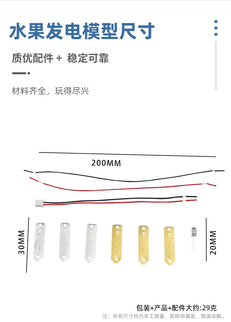과일 배터리 과학 소량 생산 과일 발전 과학 및 교육 실험 완구 초등 및 중등 학생을위한 수제 DIY 재료 팩스토어 가기